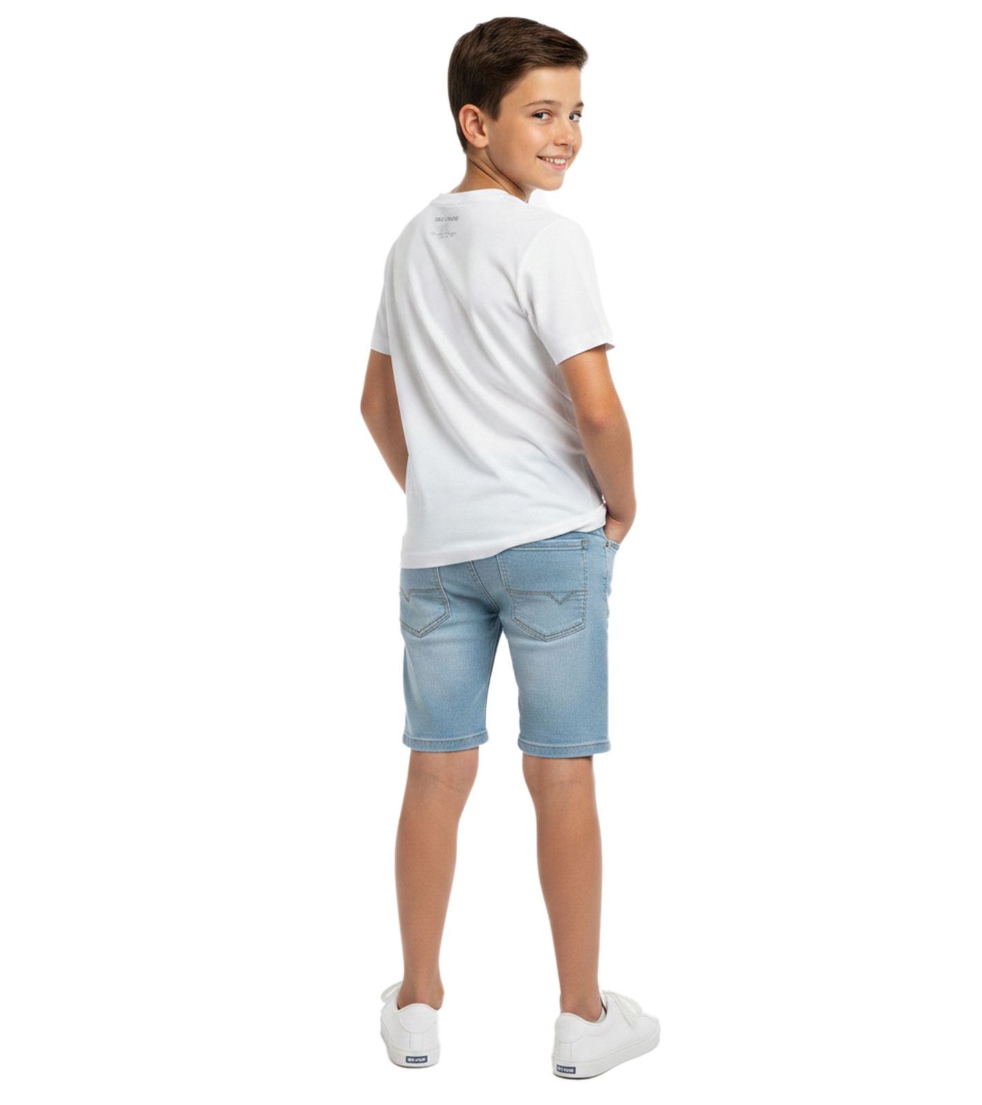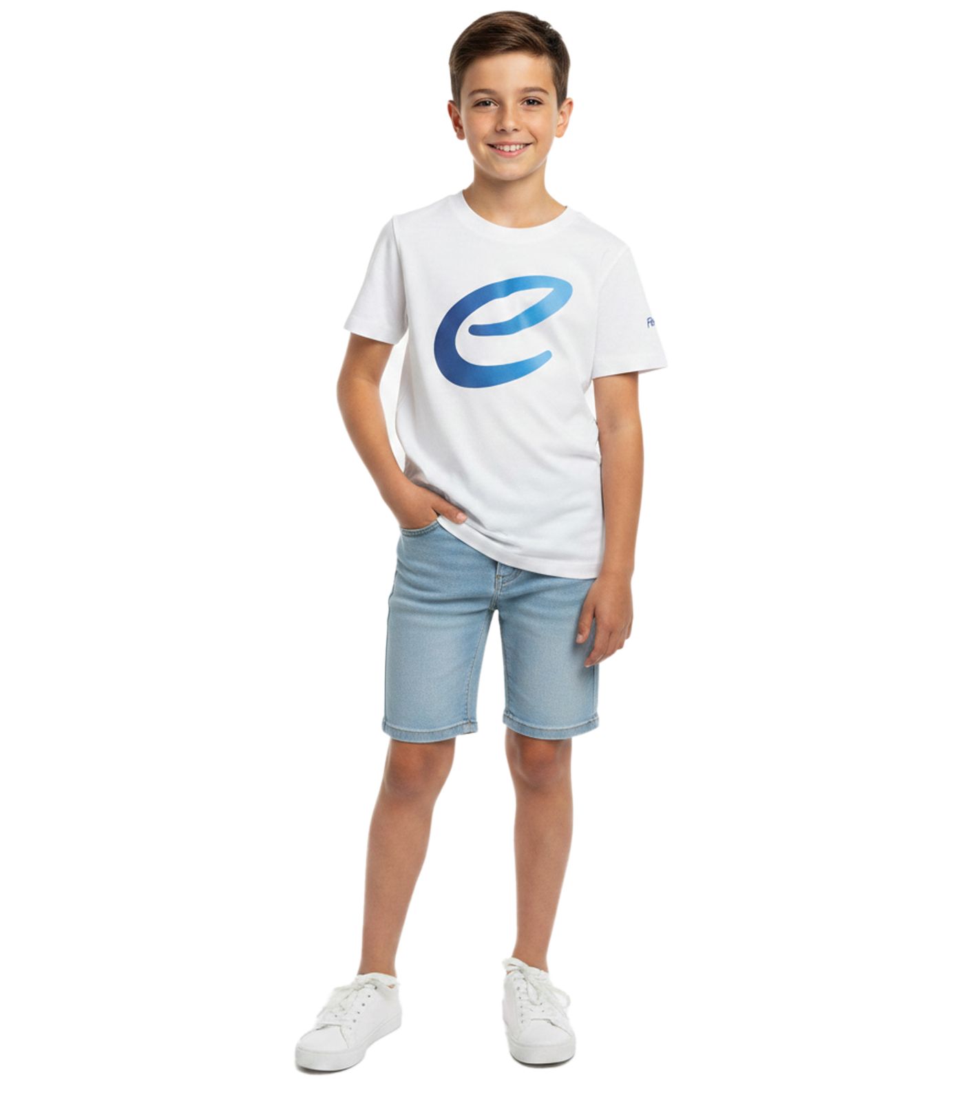 farbenfrohes Formula E Kinder T-Shirt Kurzarm-Shirt nachhaltiges Baumwoll-Shirt mit Formula E Logo 701223593 002 Weiß/Blau