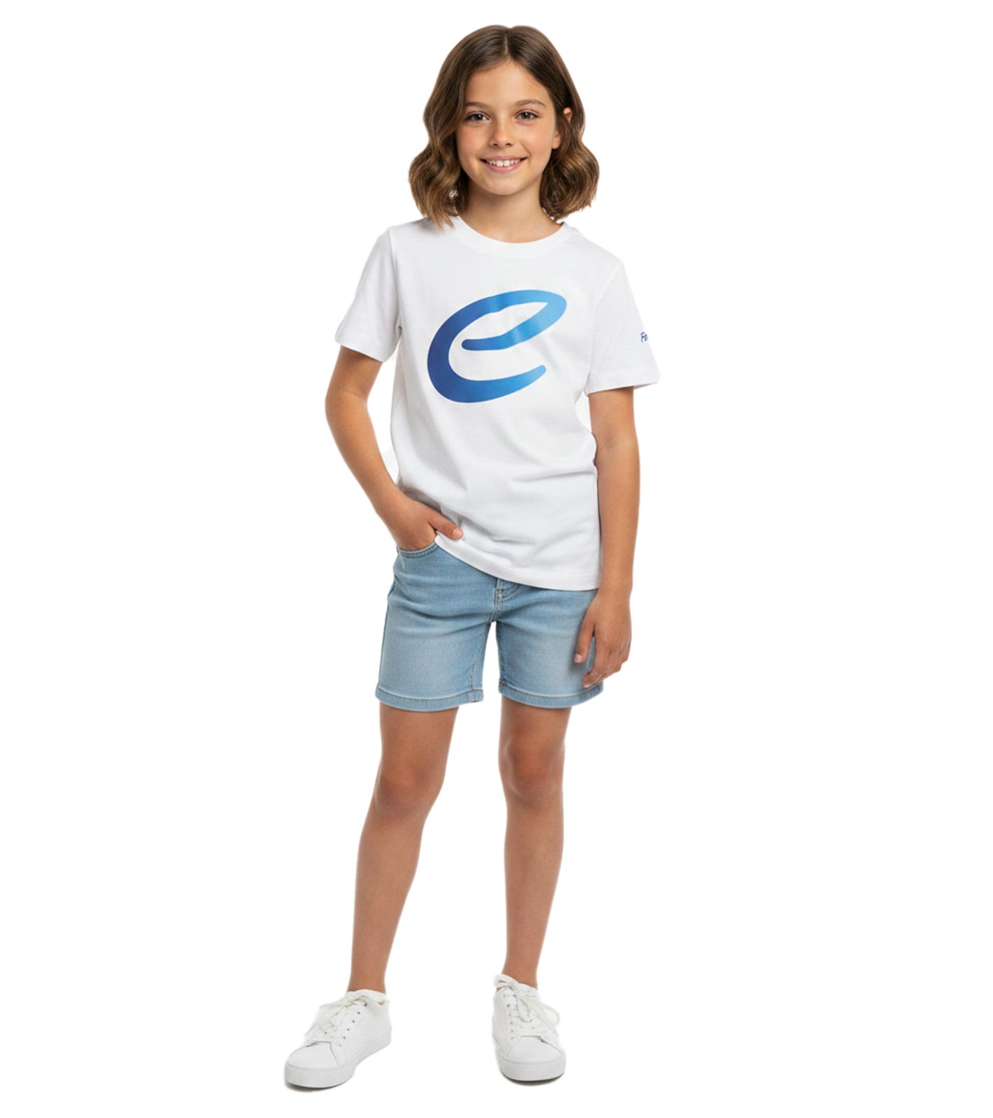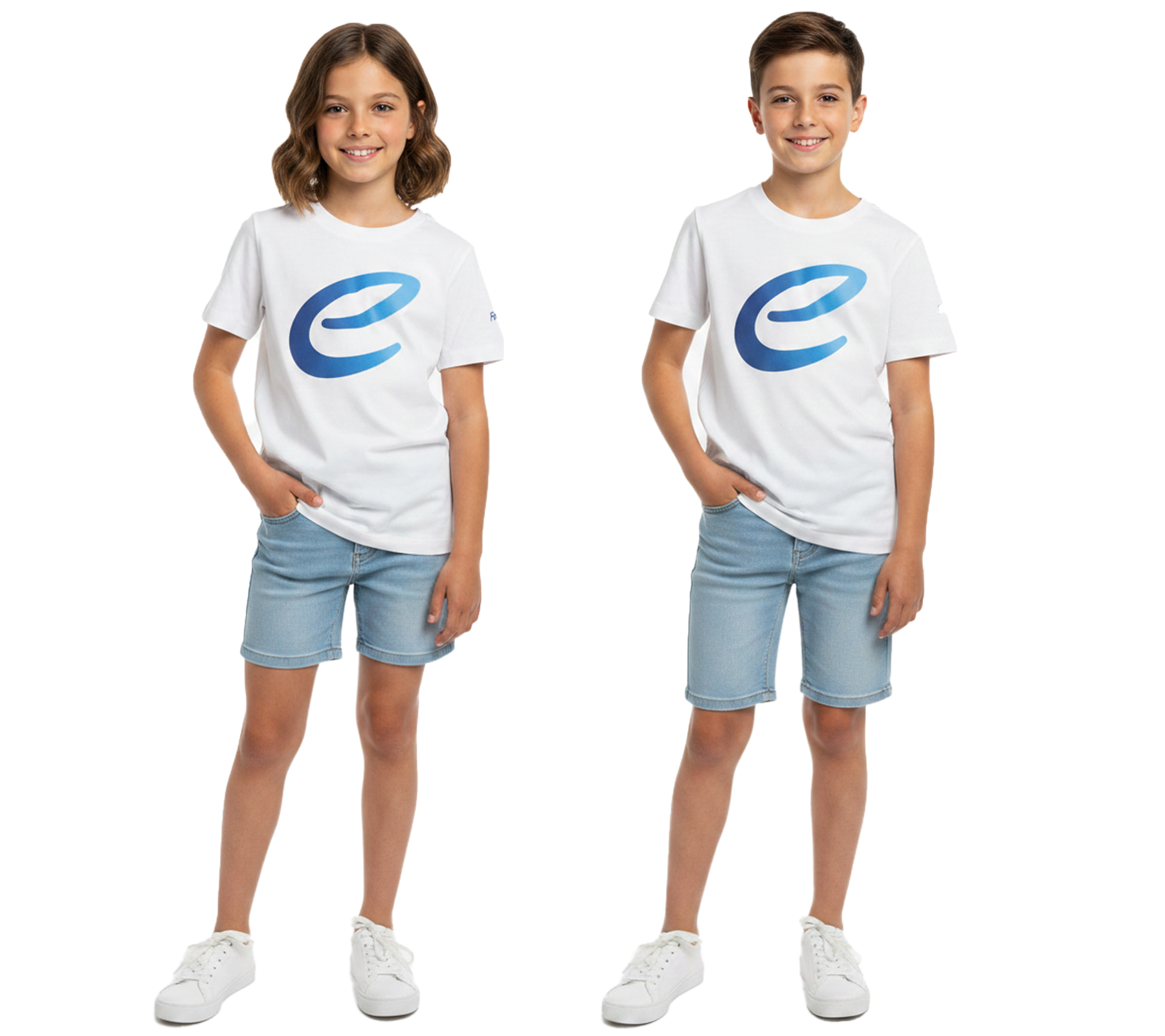 farbenfrohes Formula E Kinder T-Shirt Kurzarm-Shirt nachhaltiges Baumwoll-Shirt mit Formula E Logo 701223593 Weiß/Blau oder Weiß/Pink/Gelb