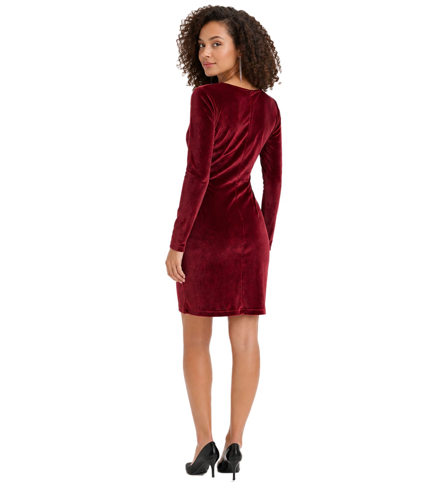 feminines Damen Mini-Kleid aus glänzendem Samt Abend-Kleid 908136 Weinrot