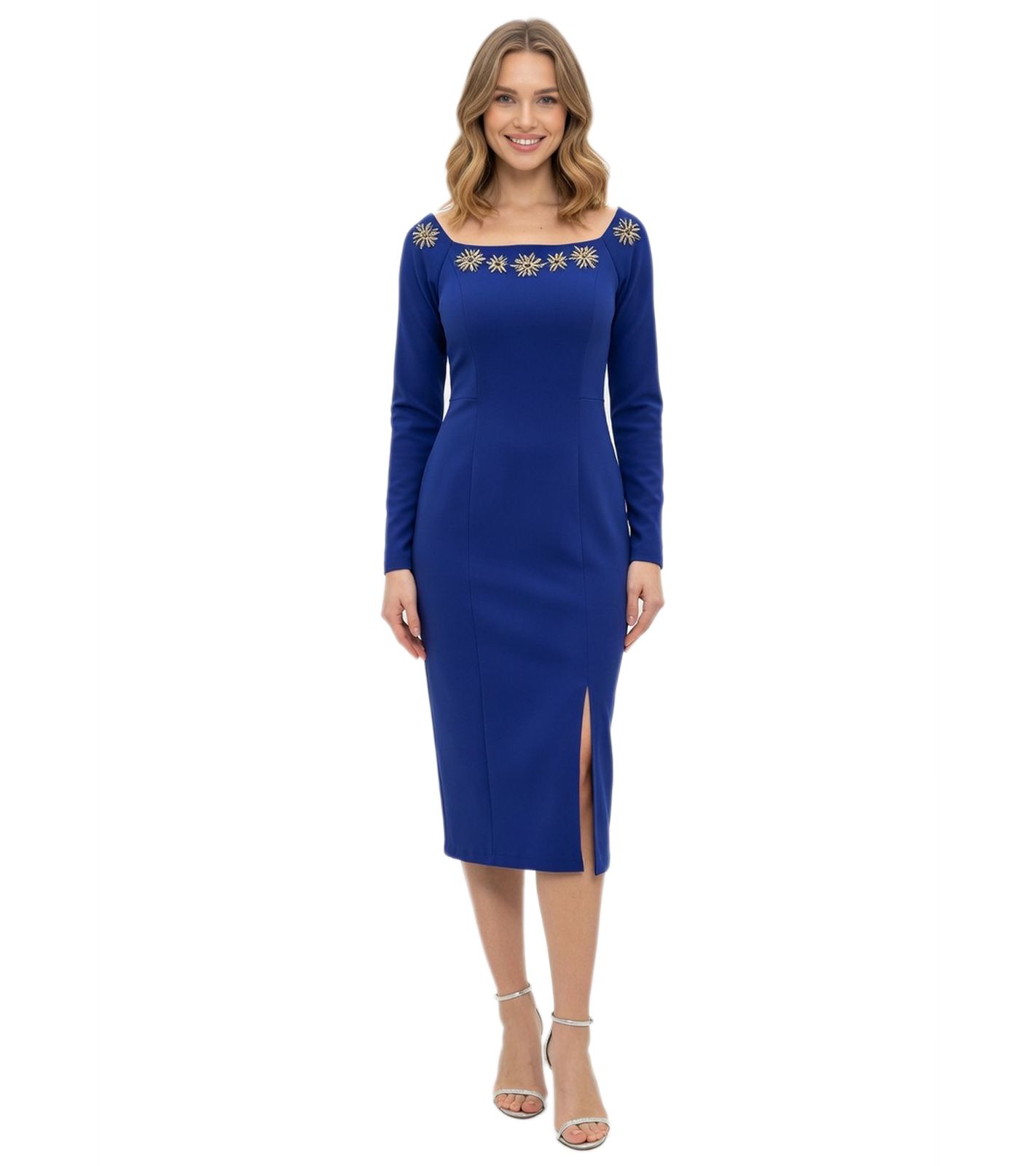 - Dieses figurbetonte Midikleid mit Glitzersteinen und langen Ärmeln besticht durch seinen eleganten Schnitt
