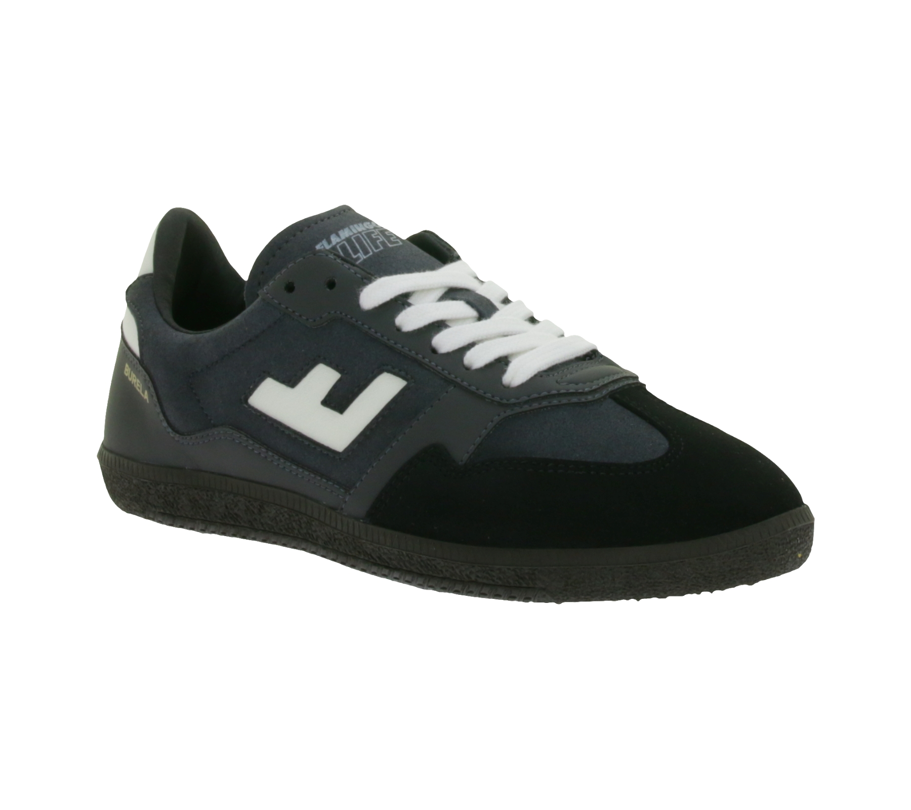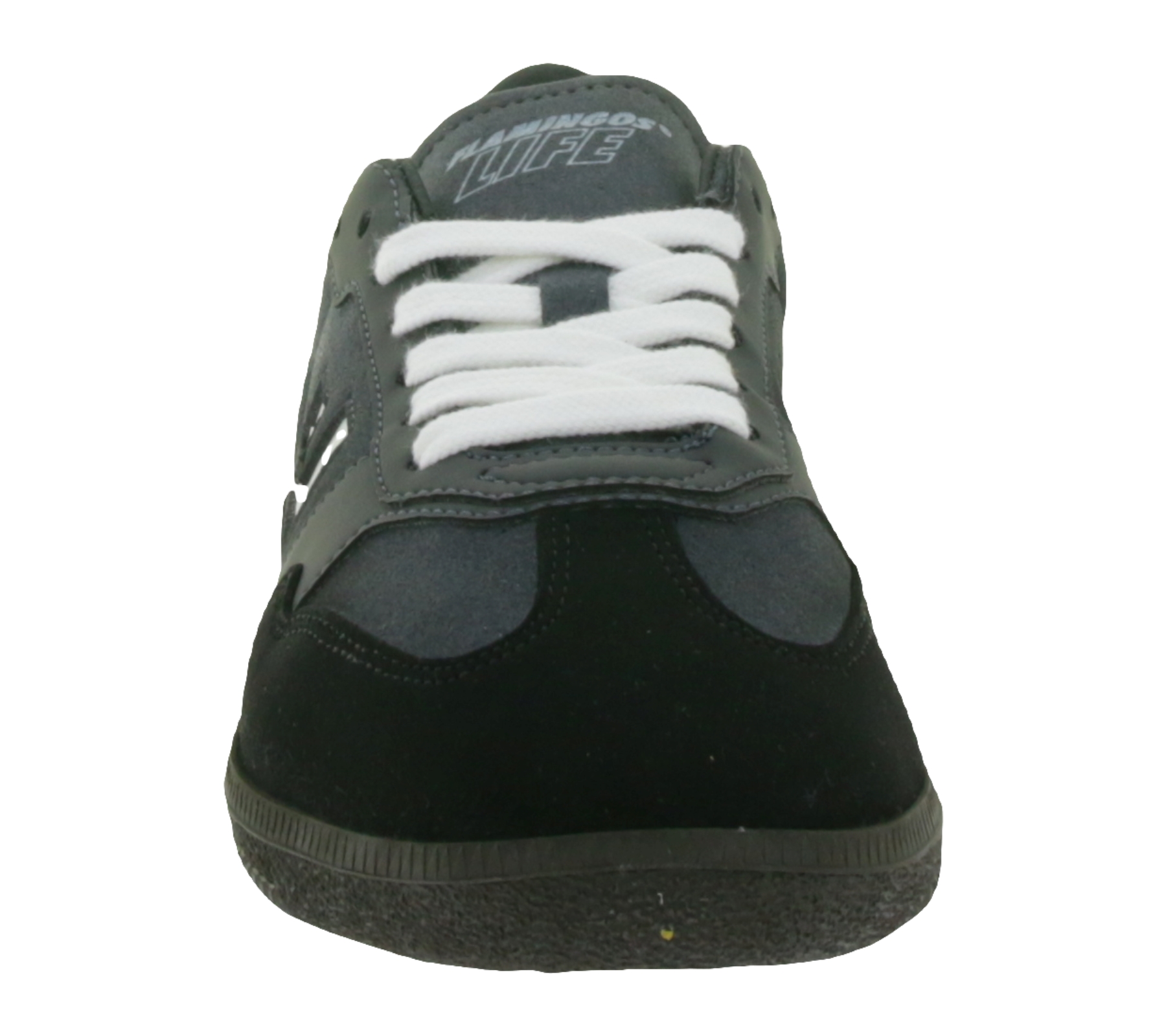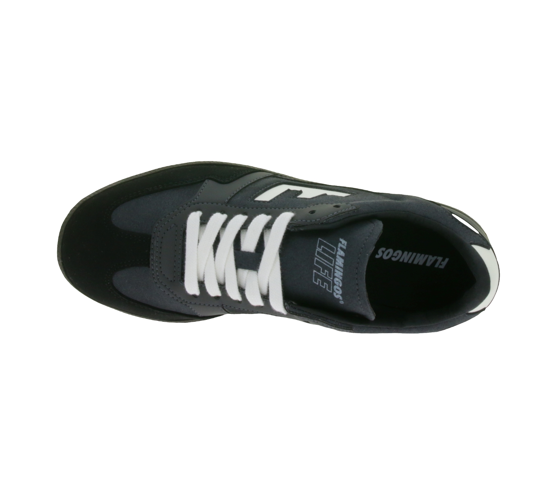 Baskets basses vegan FLAMINGOS LIFE Burela Slim pour femme et homme, fabriquées au Portugal, gris foncé/noir