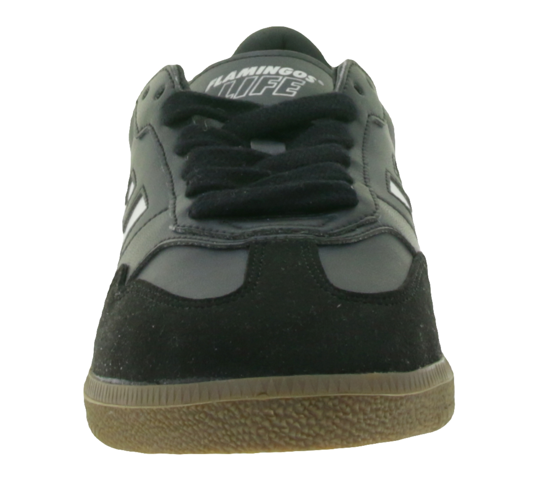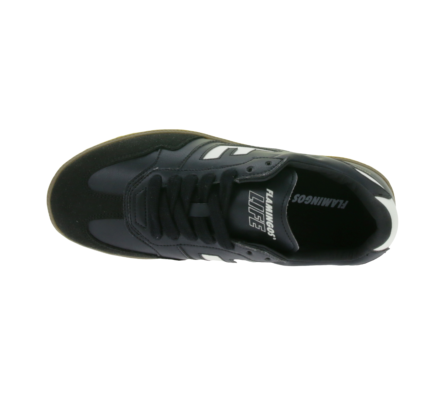 Baskets basses vegan FLAMINGOS LIFE Burela Slim pour femme et homme, noires, fabriquées au Portugal