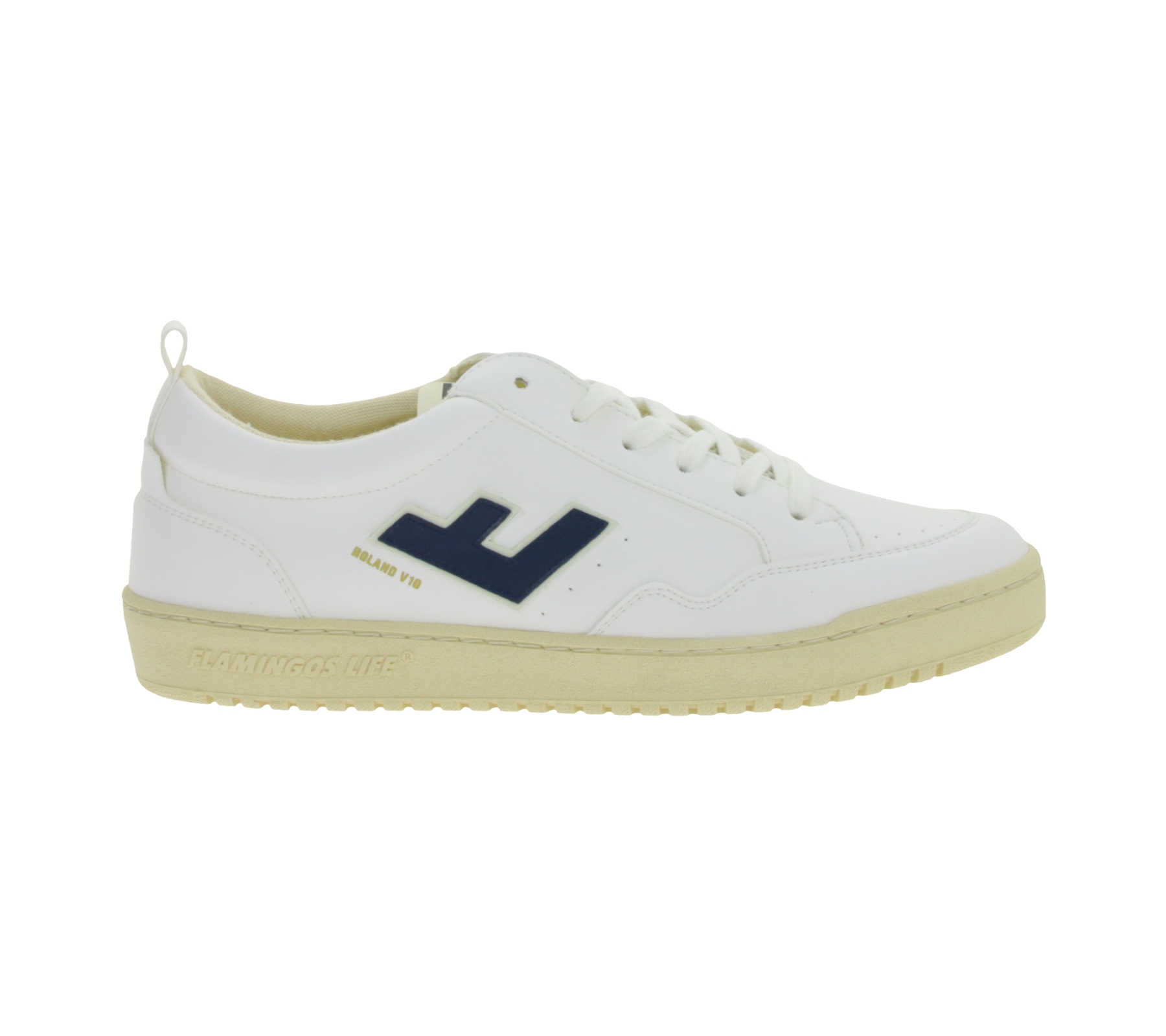 Baskets basses vegan FLAMINGOS LIFE Roland V10 pour femme et homme, fabriquées en Espagne, blanc/bleu foncé