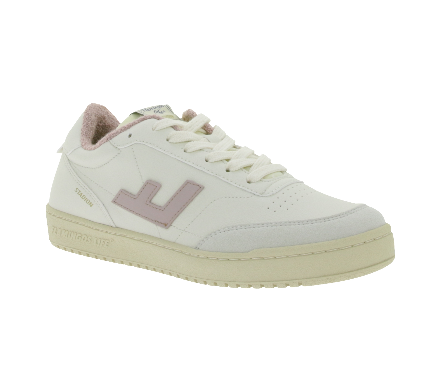 Baskets basses vegan FLAMINGOS LIFE Stadium pour homme et femme, beige/rose poudré, fabriquées en Espagne.