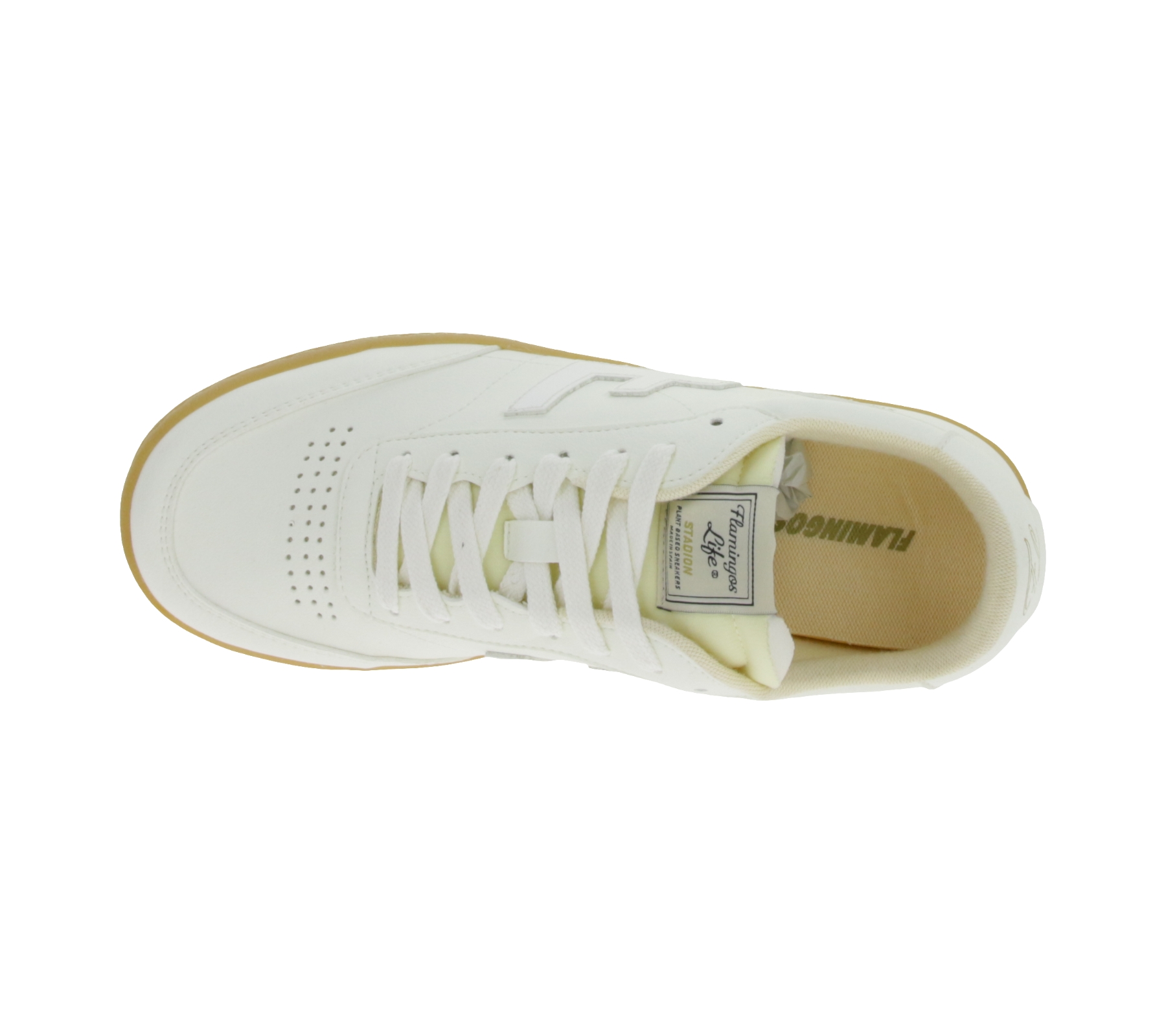 Baskets basses vegan FLAMINGOS LIFE Stadium pour homme et femme, fabriquées en Espagne, couleur vanille.
