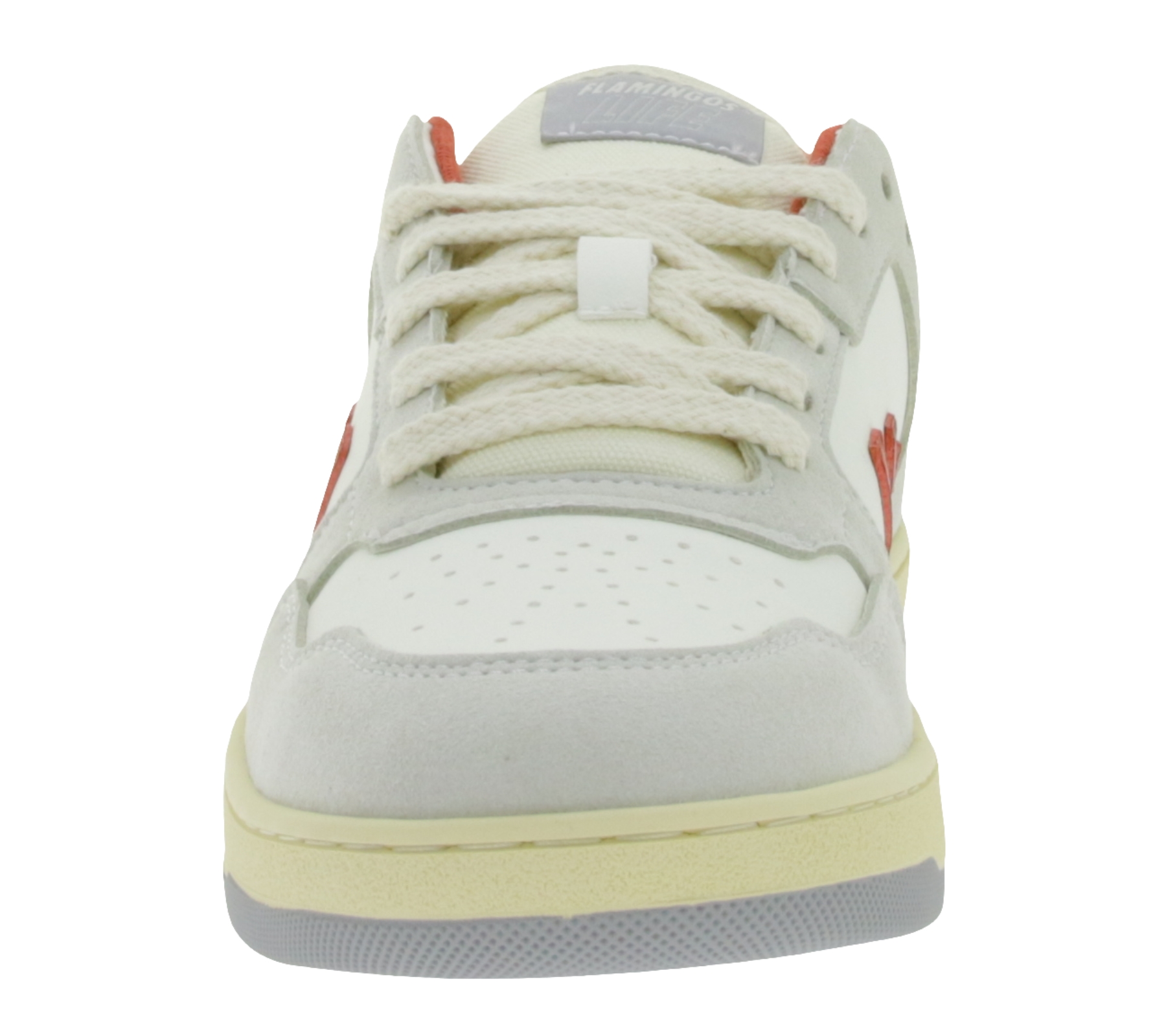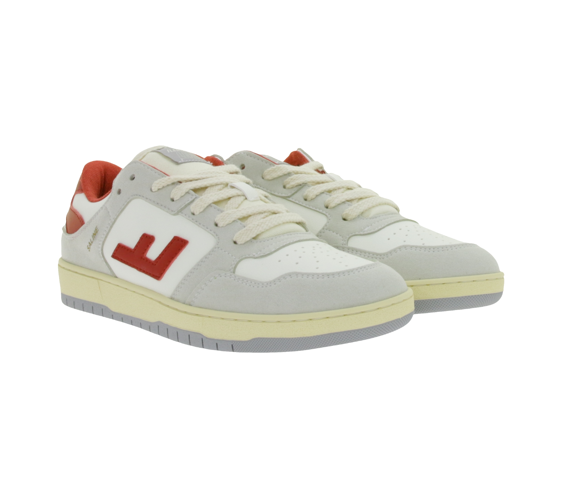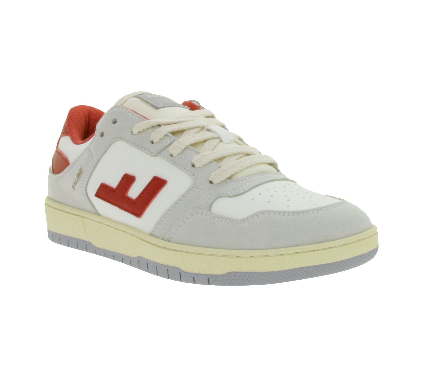 Baskets basses vegan SALINE pour femmes de Flamingos Life, fabriquées au Portugal, coloris gris/blanc/rouge
