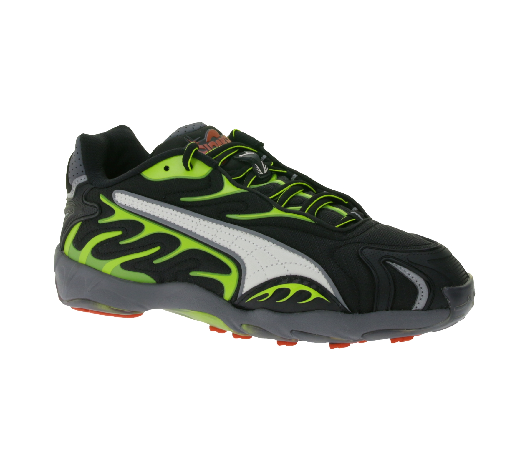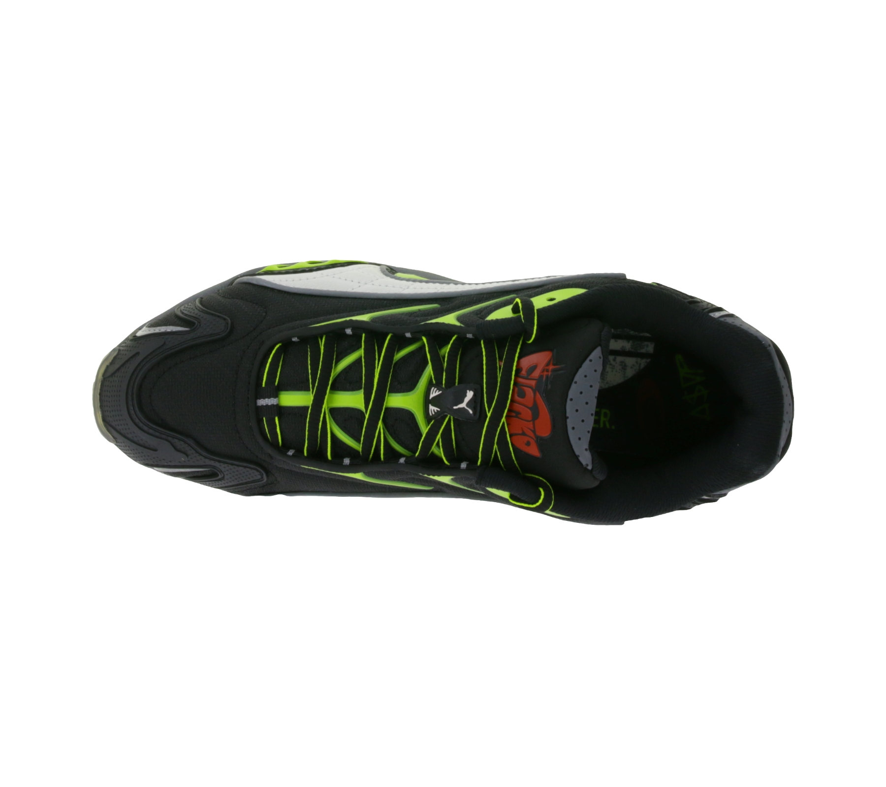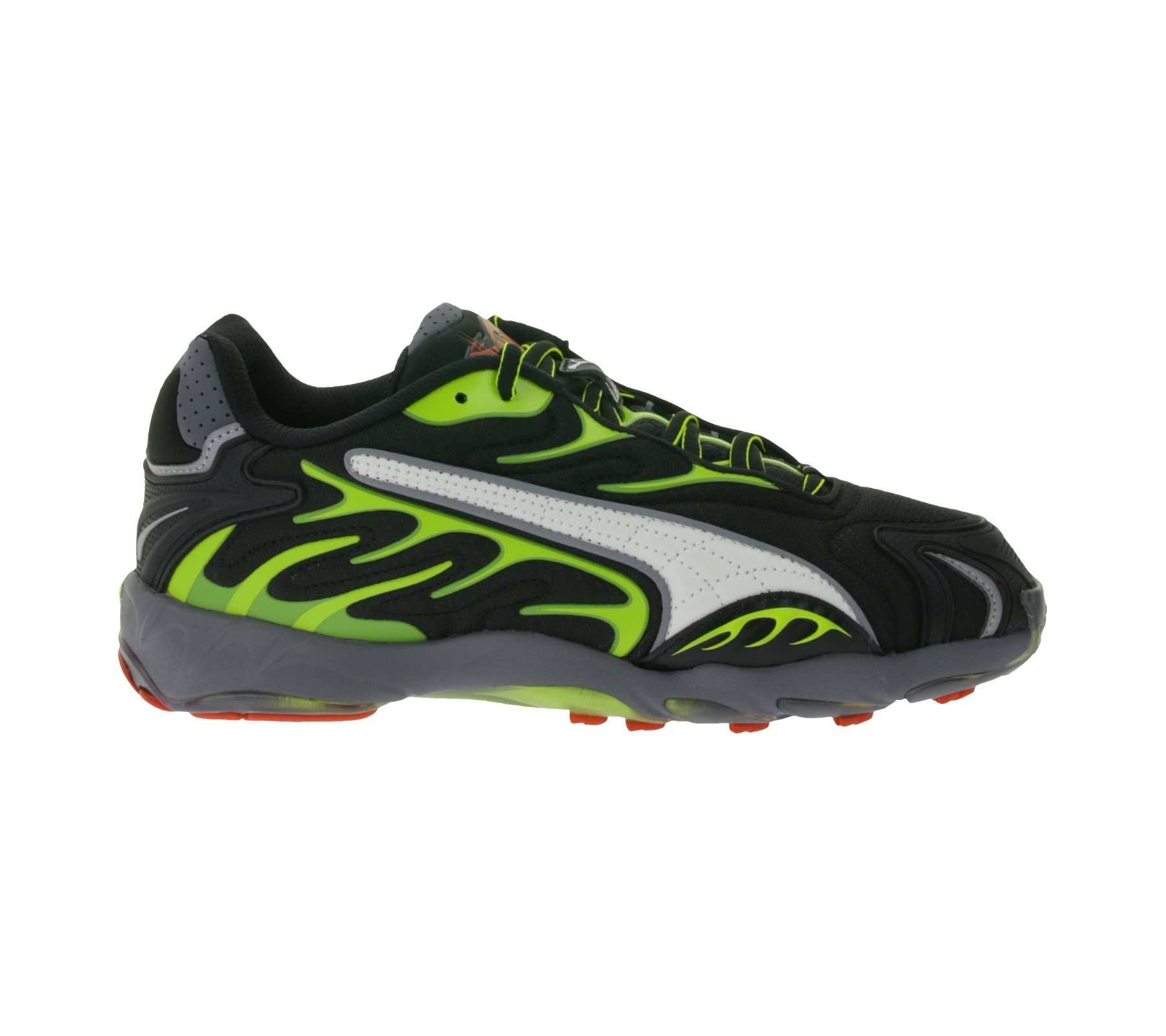 Conçue en collaboration avec A$AP Rocky, cette basket arbore le noir PUMA avec des touches de vert citron et de blanc cassé.