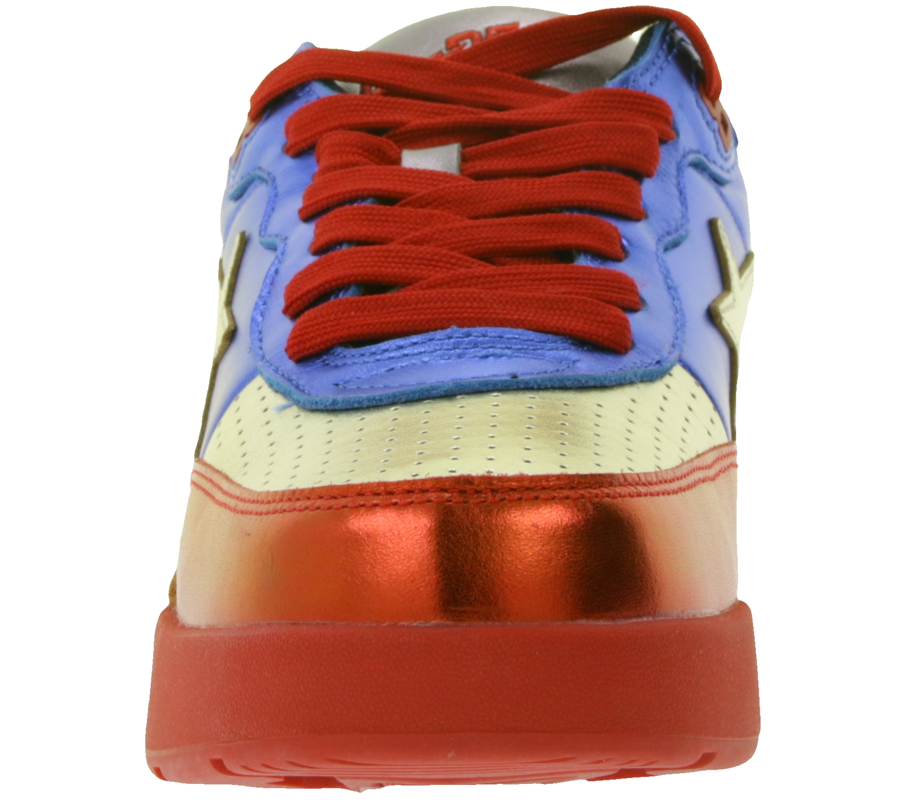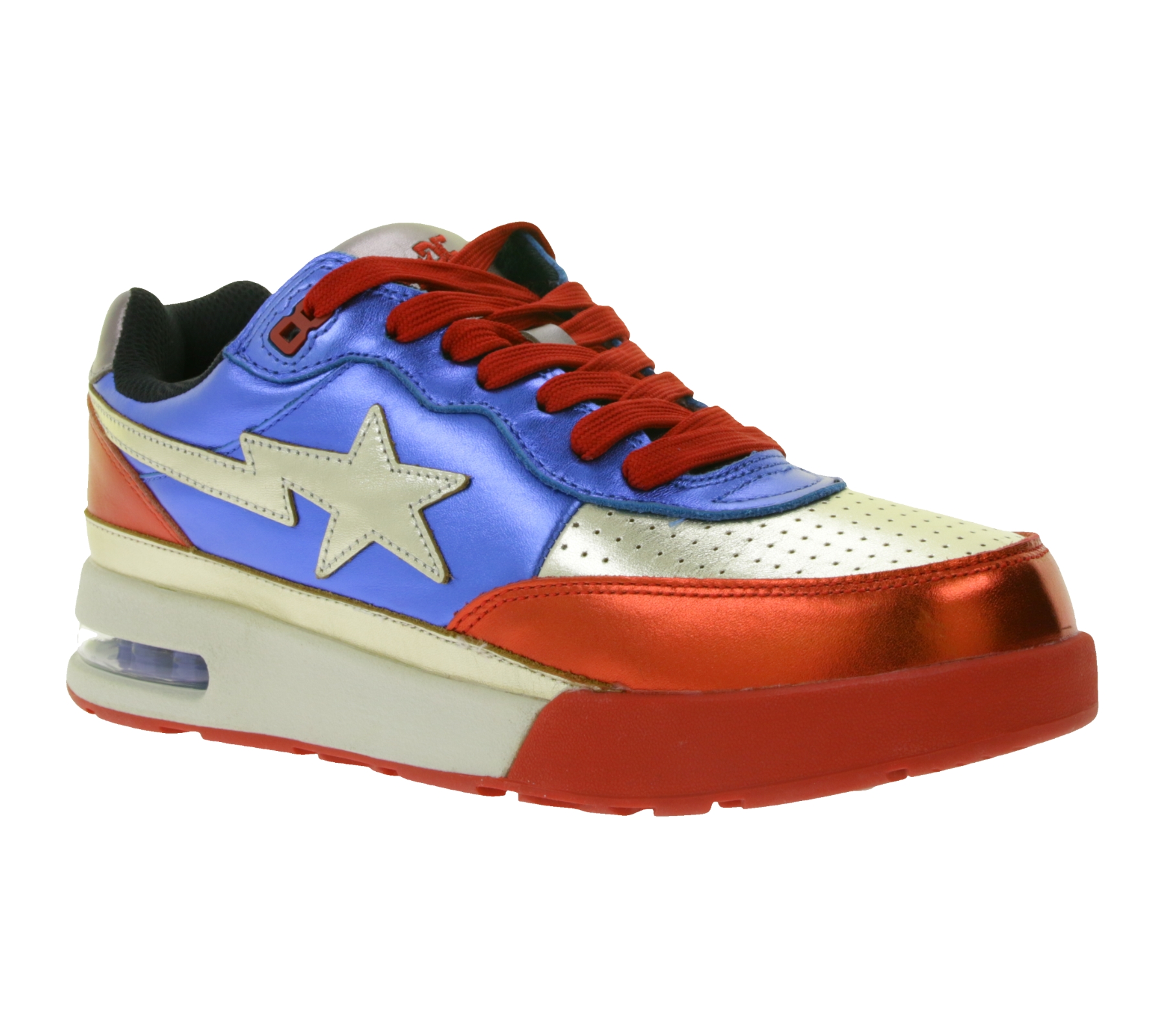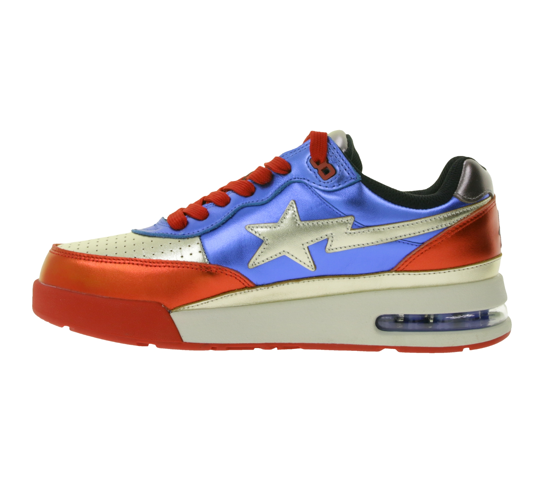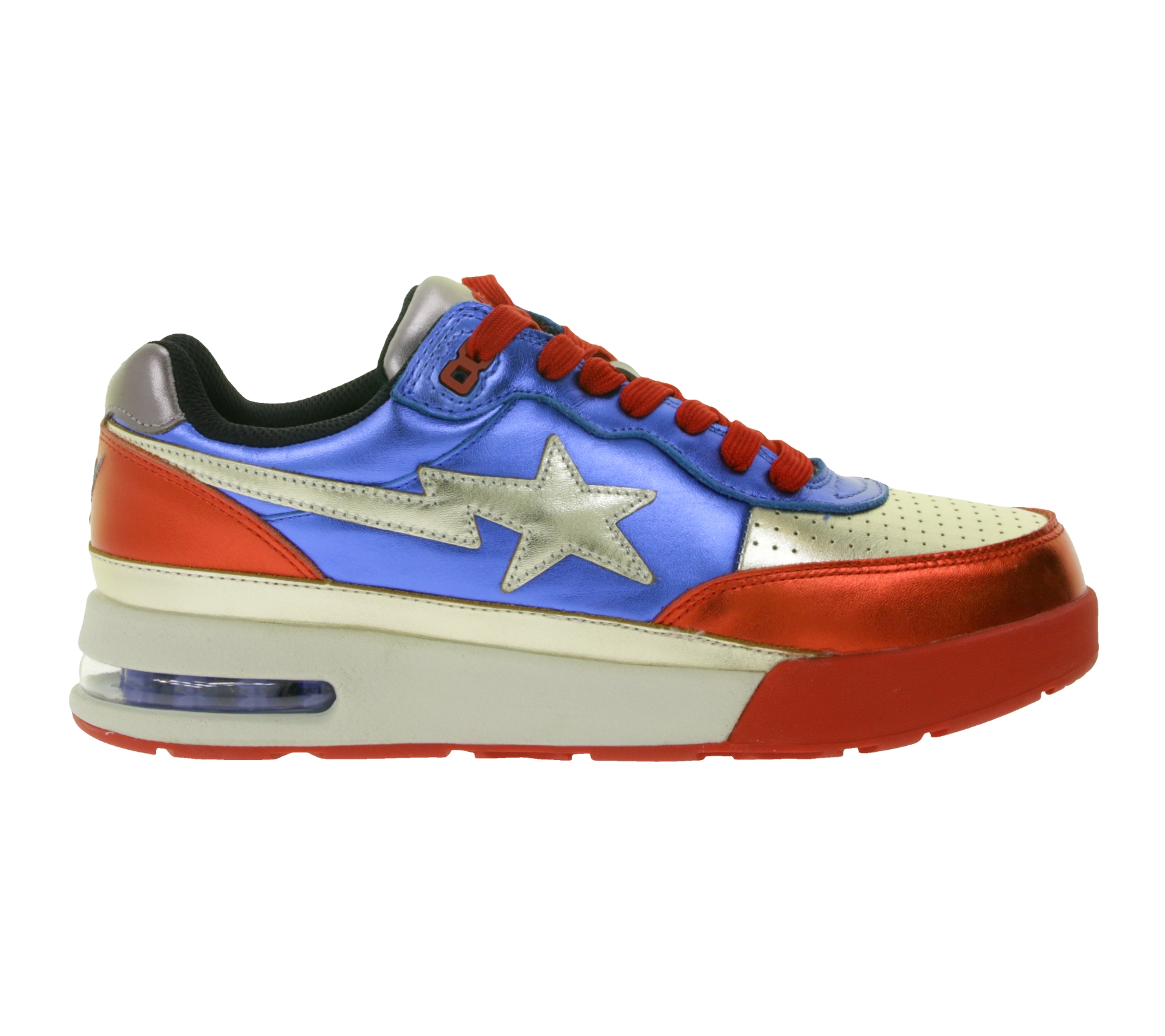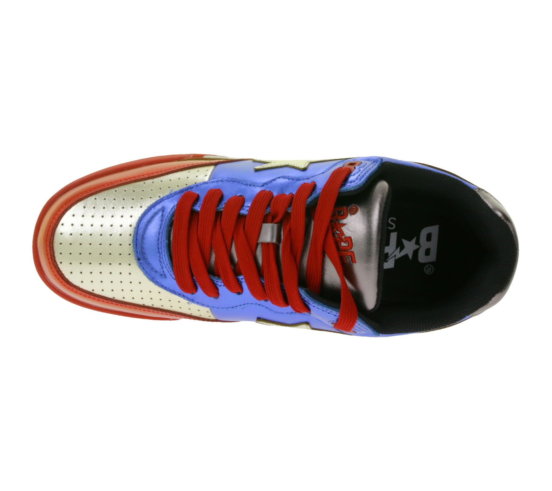 Baskets unisexes A Bathing Ape Bape Road Sta M2 en cuir verni brillant, chaussures en cuir véritable, bleu/rouge