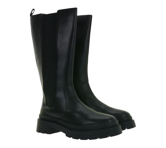 Bottes à semelle épaisse en cuir véritable noir pour femme, avec empiècement élastique 939306