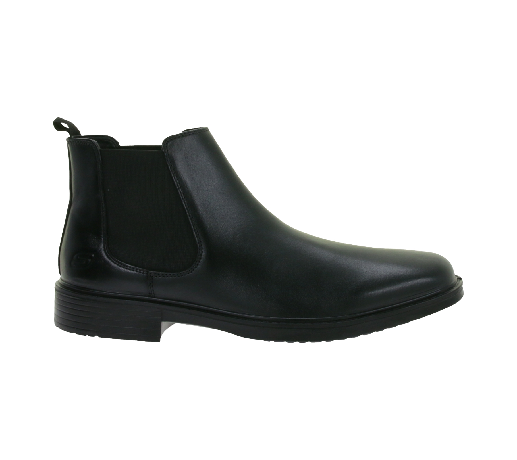 Bottines Chelsea SKECHERS Miller Boris pour homme, élégantes, en cuir véritable, avec semelle intérieure à mémoire de forme aérée (réf. 205072-BLK), couleur noire