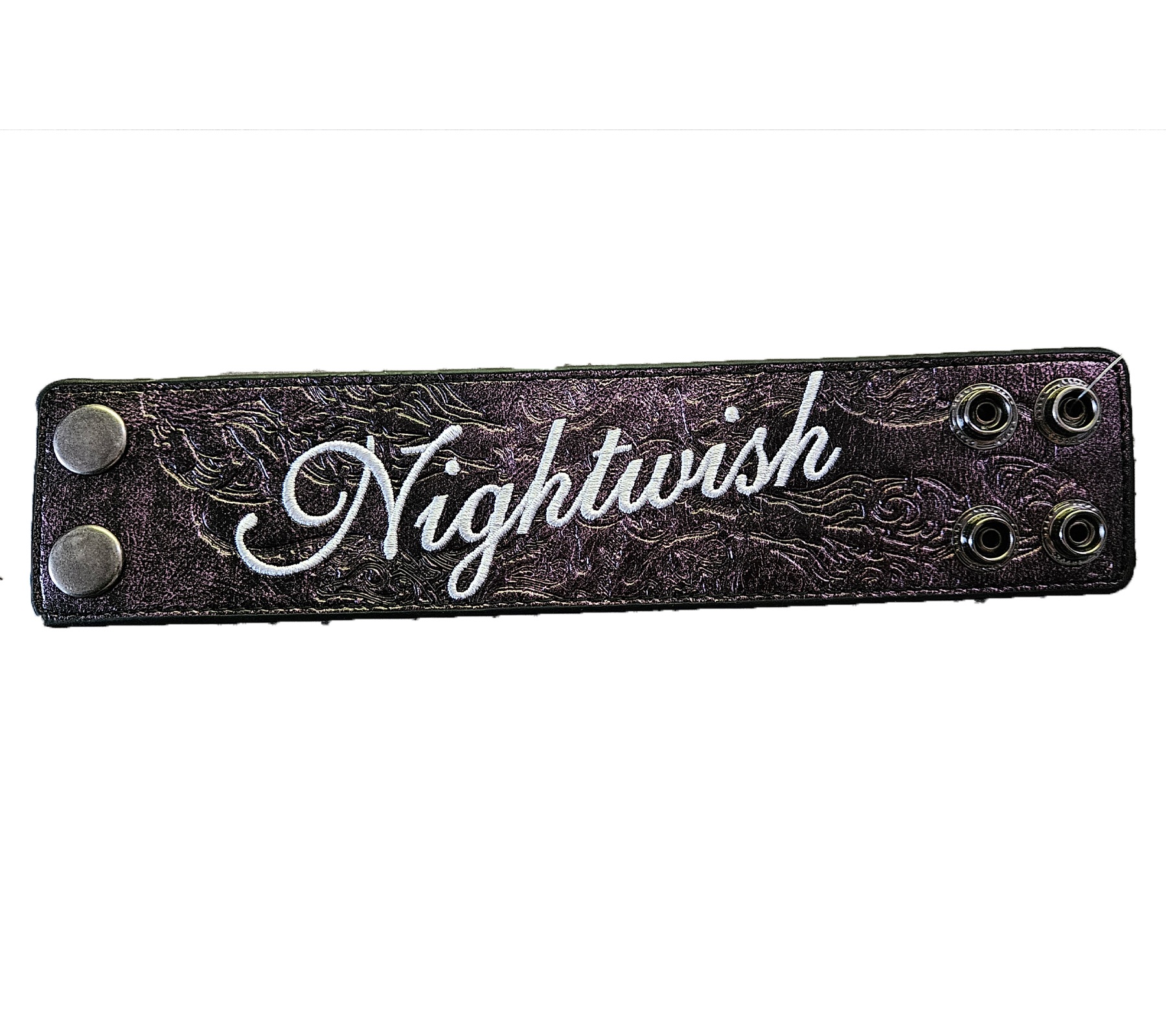 Bracciale Nightwish in Symphonic Metal con Logo e Scritta in Pelle, Viola
