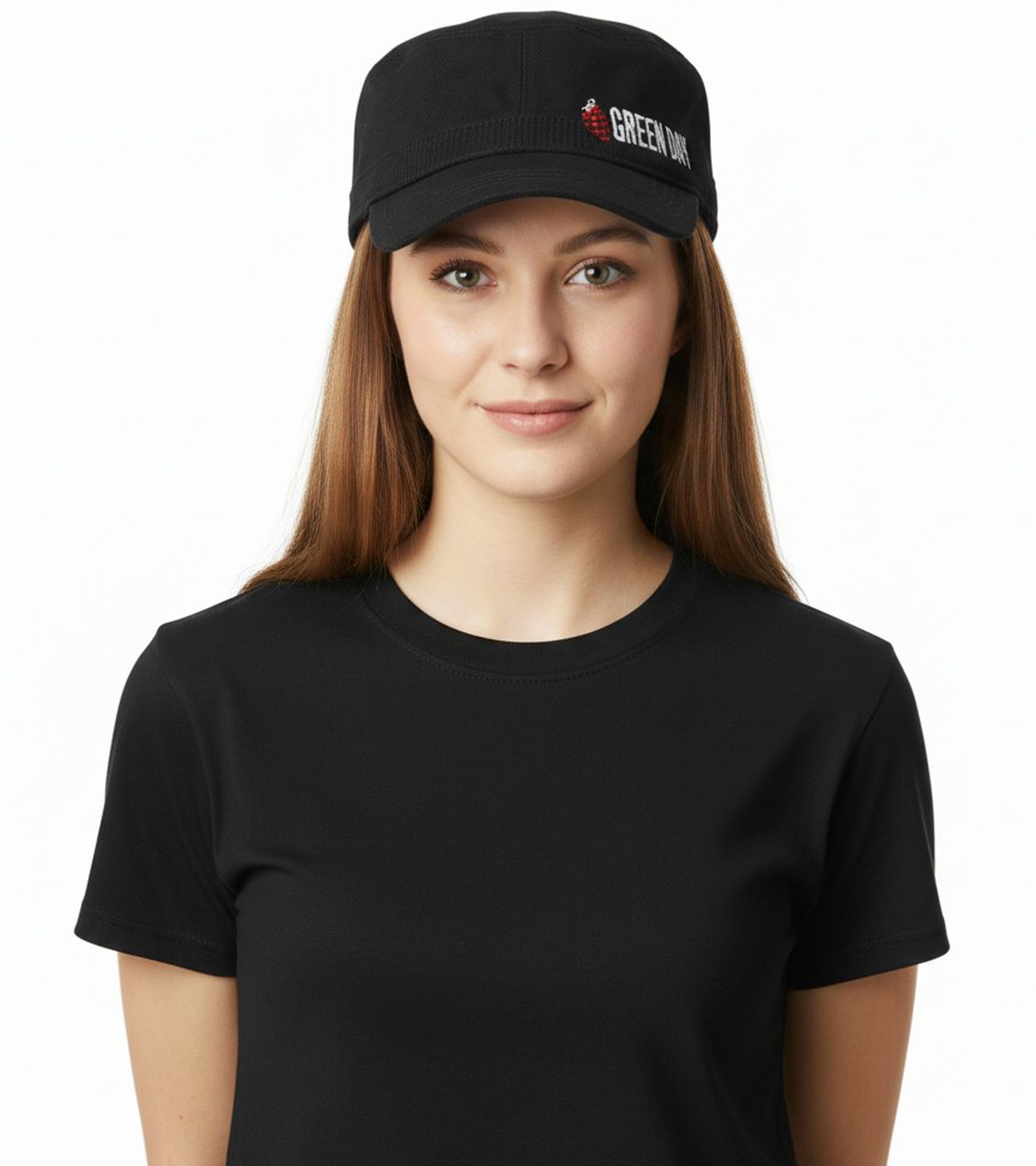 Casquette unisexe en coton du groupe punk rock Green Day, coupe militaire et légèrement incurvée, FC107042GRN, noire
