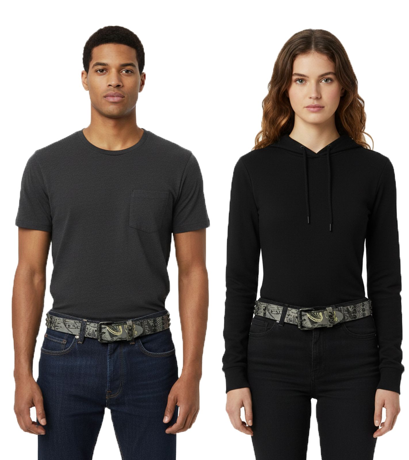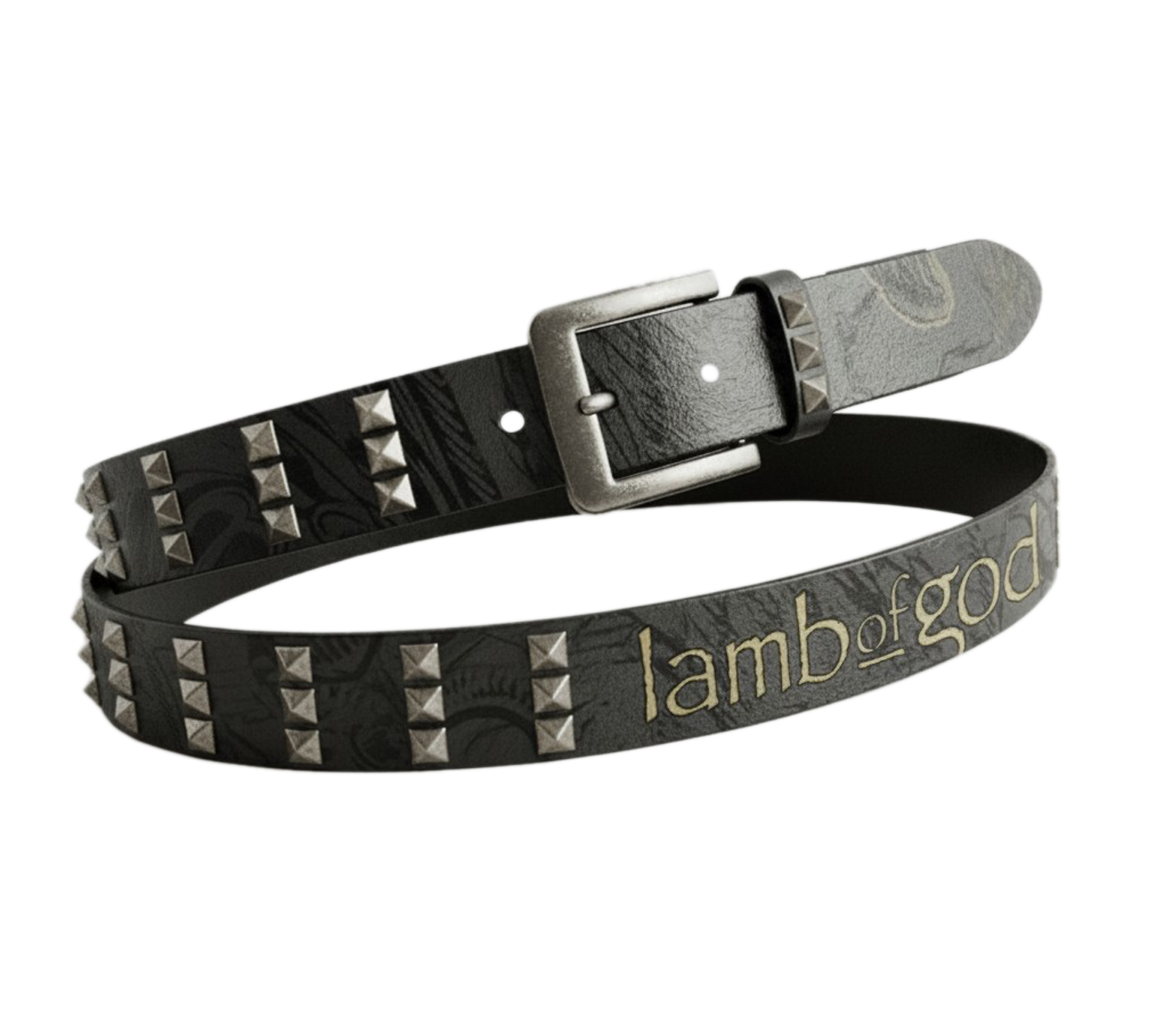 Ceinture Lamb of God en métal pour homme ou femme, taille unique, 95 cm, ceinture décontractée ajustable, BT106477LOG3, gris/noir