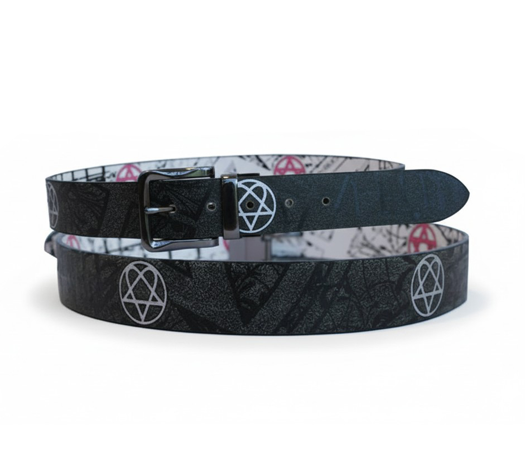 Ceinture Rockband HIM pour femme, taille unique, 100 cm, en cuir véritable avec motif double face, BT110925HIM3, blanc/rose
