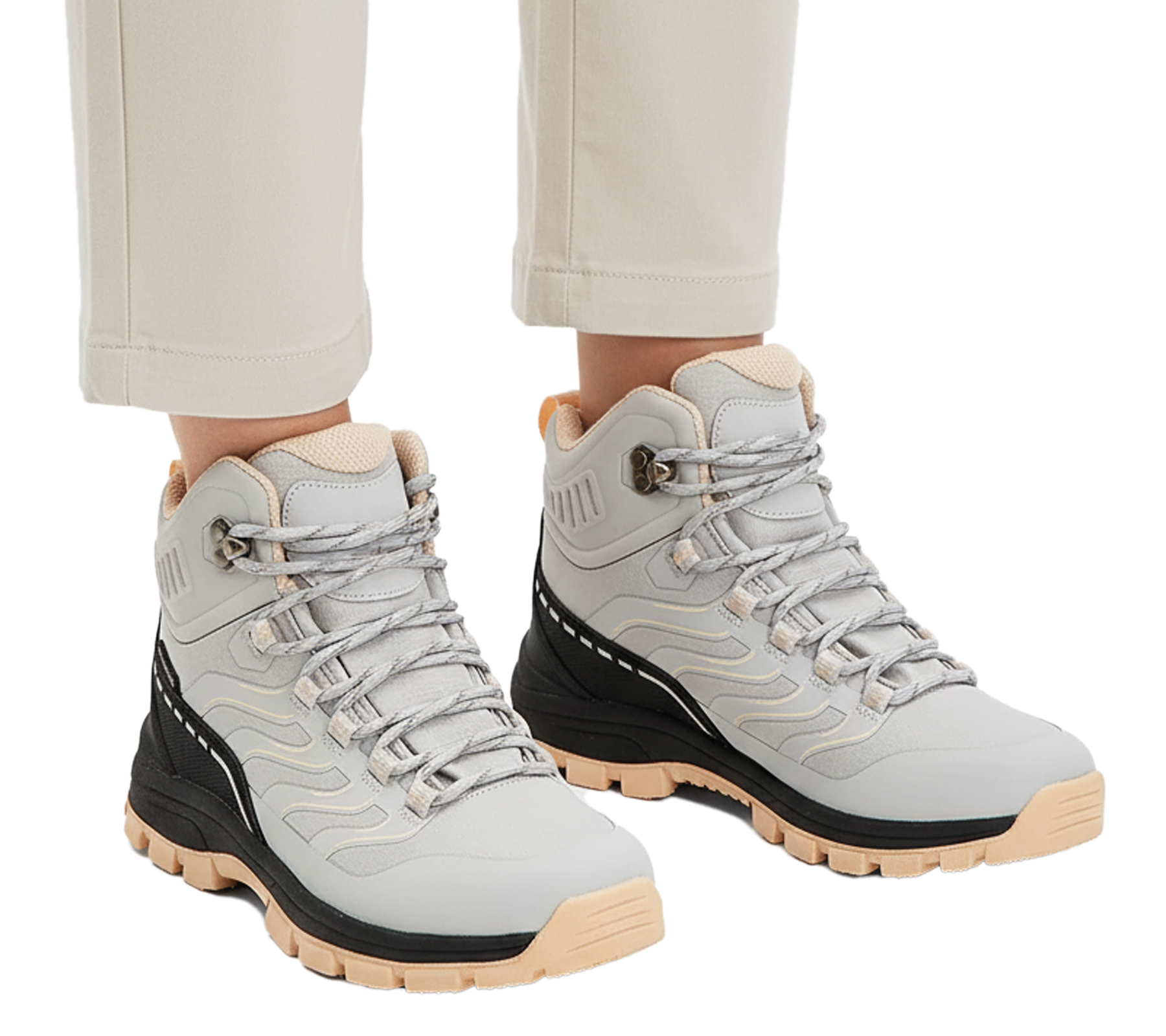 Chaussures de randonnée imperméables pour femmes, bottes de trekking avec tige rembourrée, simili cuir 923921 Gris