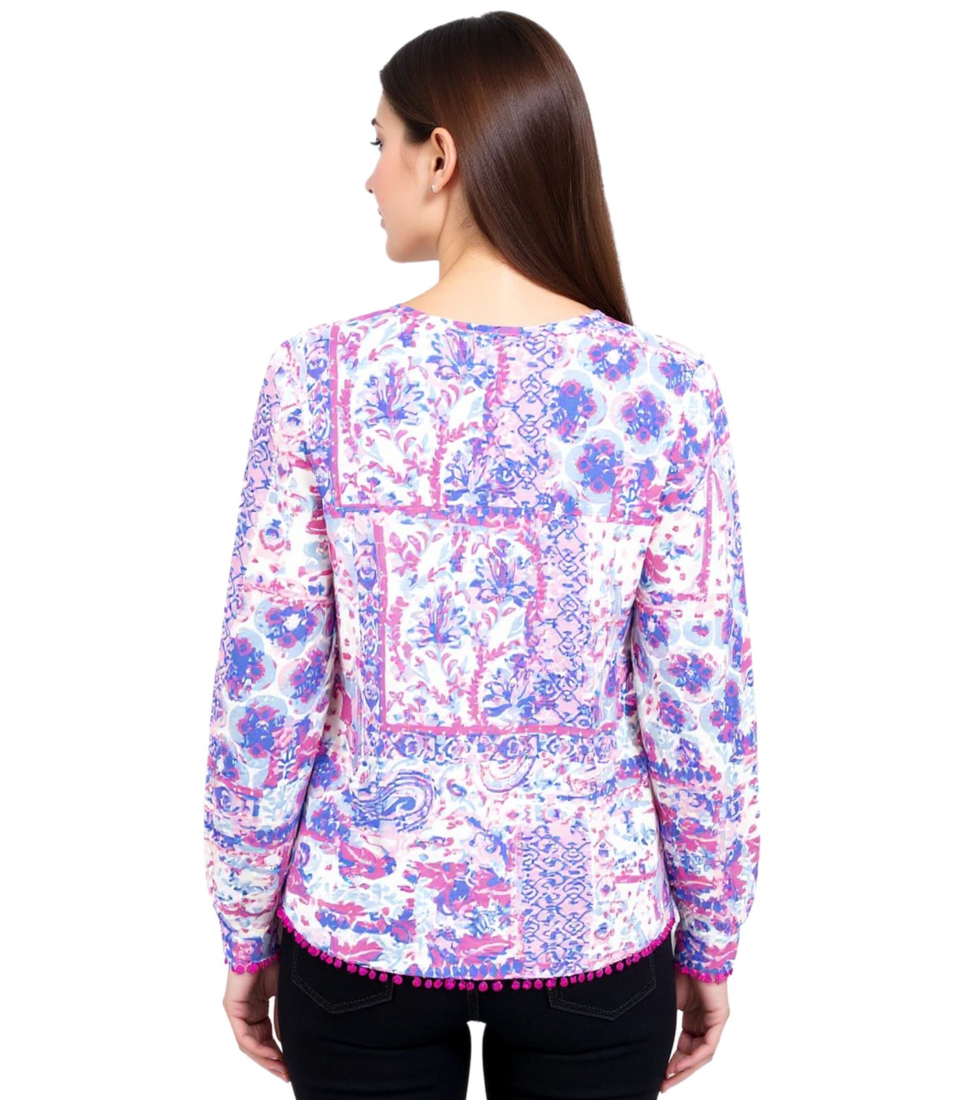 Chemisier en coton ZWILLINGSHERZ pour femme - Chemisier d'été à motif cachemire intégral 33214 Bleu/Rose/Blanc ou Vert/Rose/Blanc