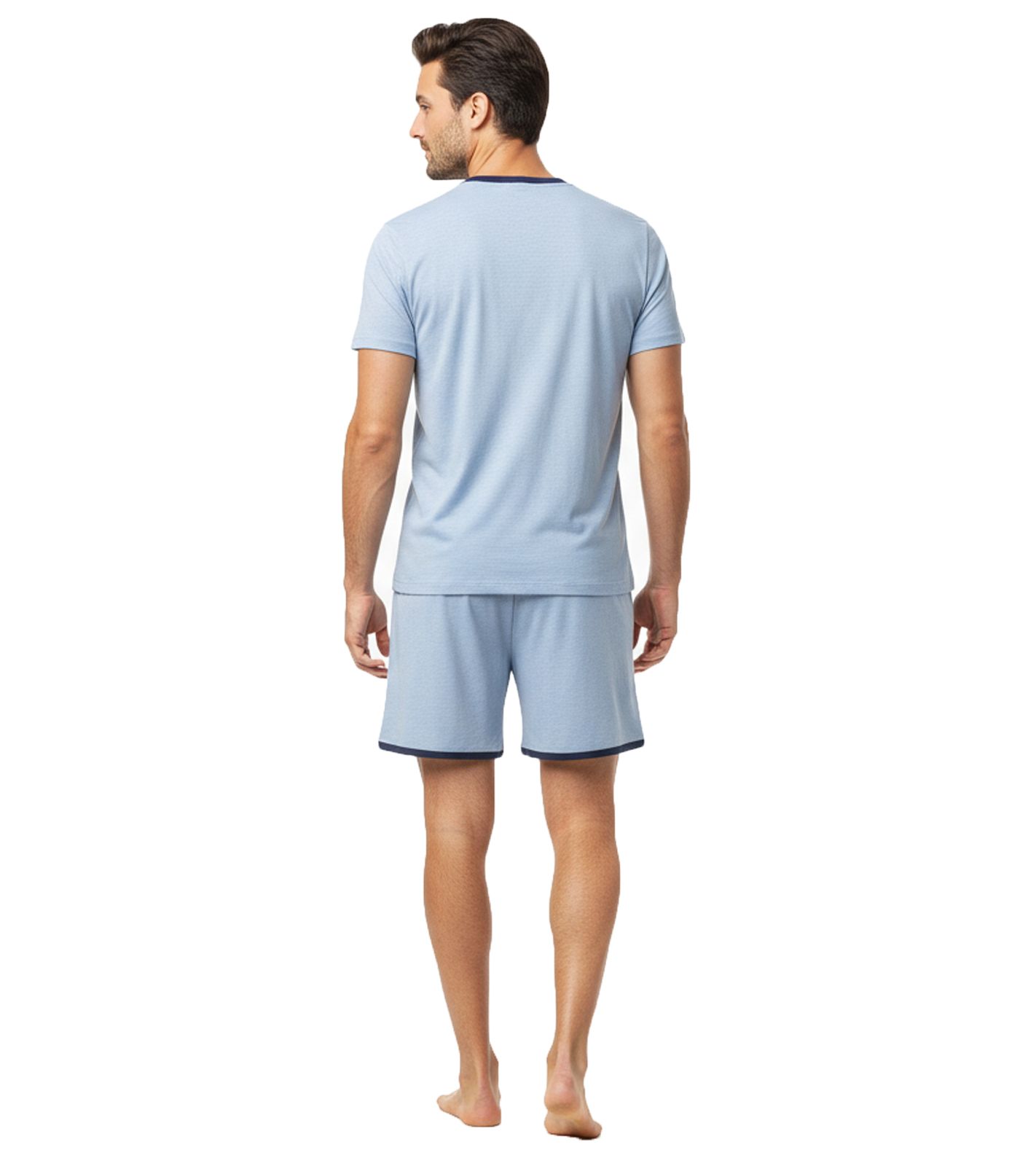 Le pyjama se compose d'un short et d'un haut assorti à manches courtes.