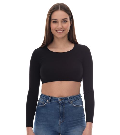 Haut court côtelé ouvert à dos pour femme de Sixth June avec haut à manches longues ouvert à dos, chemise d'été côtelée W33668KTO Noir