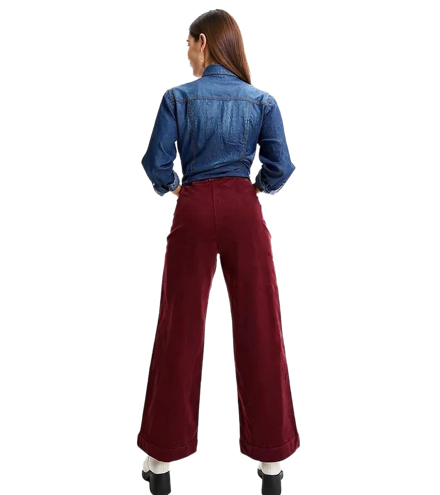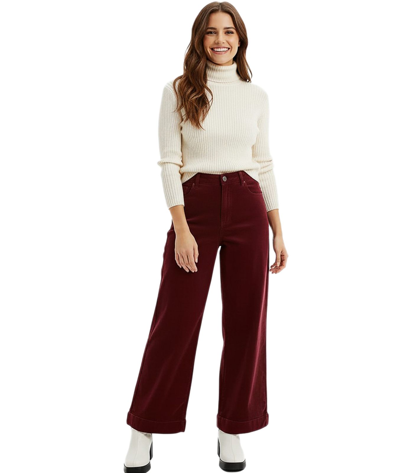 Jean femme en velours côtelé, pantalon large d'automne, taille 966140, bordeaux