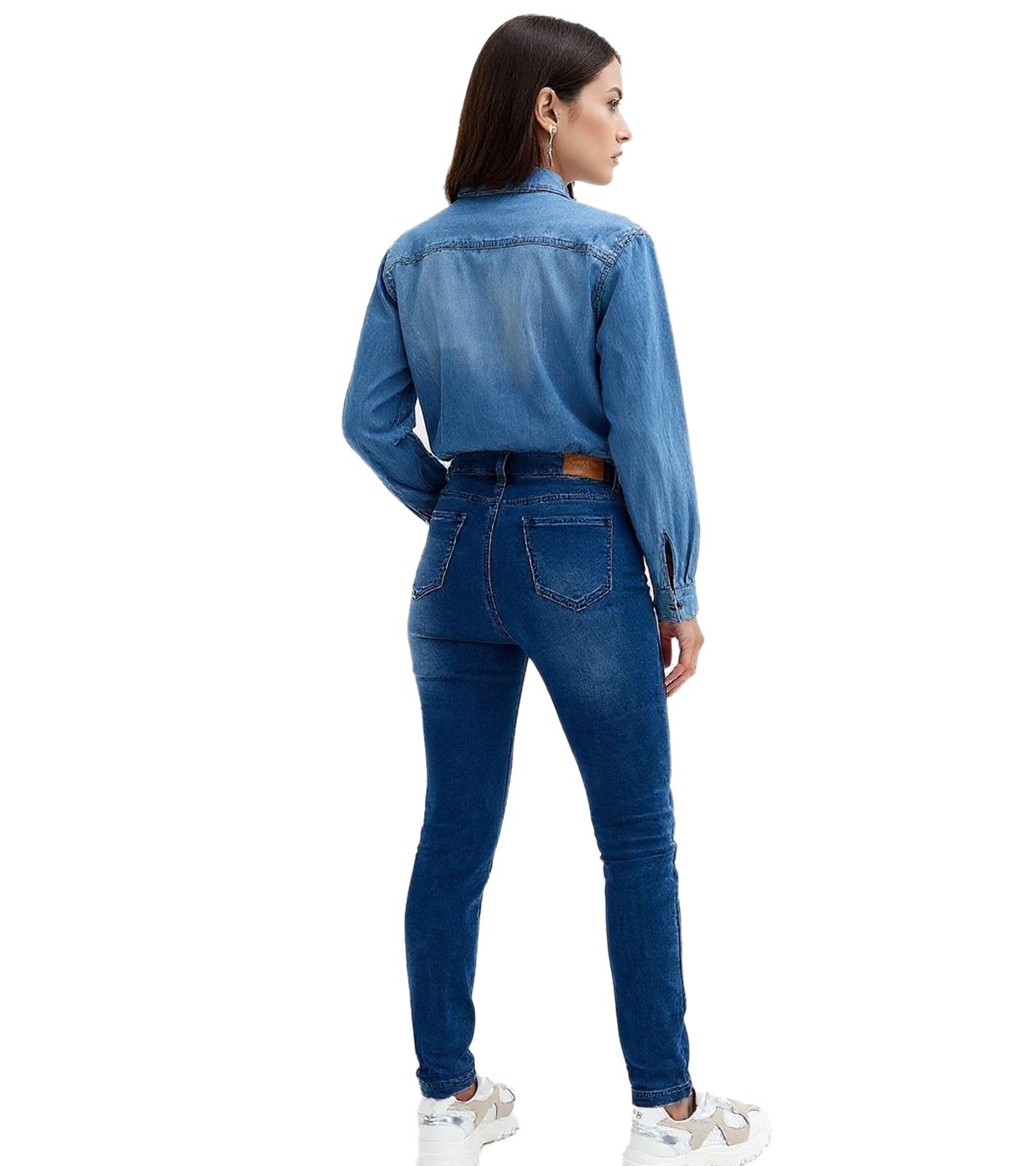 Lot de 2 jeans slim femme 4 poches avec taille élastique, 956723 Bleu