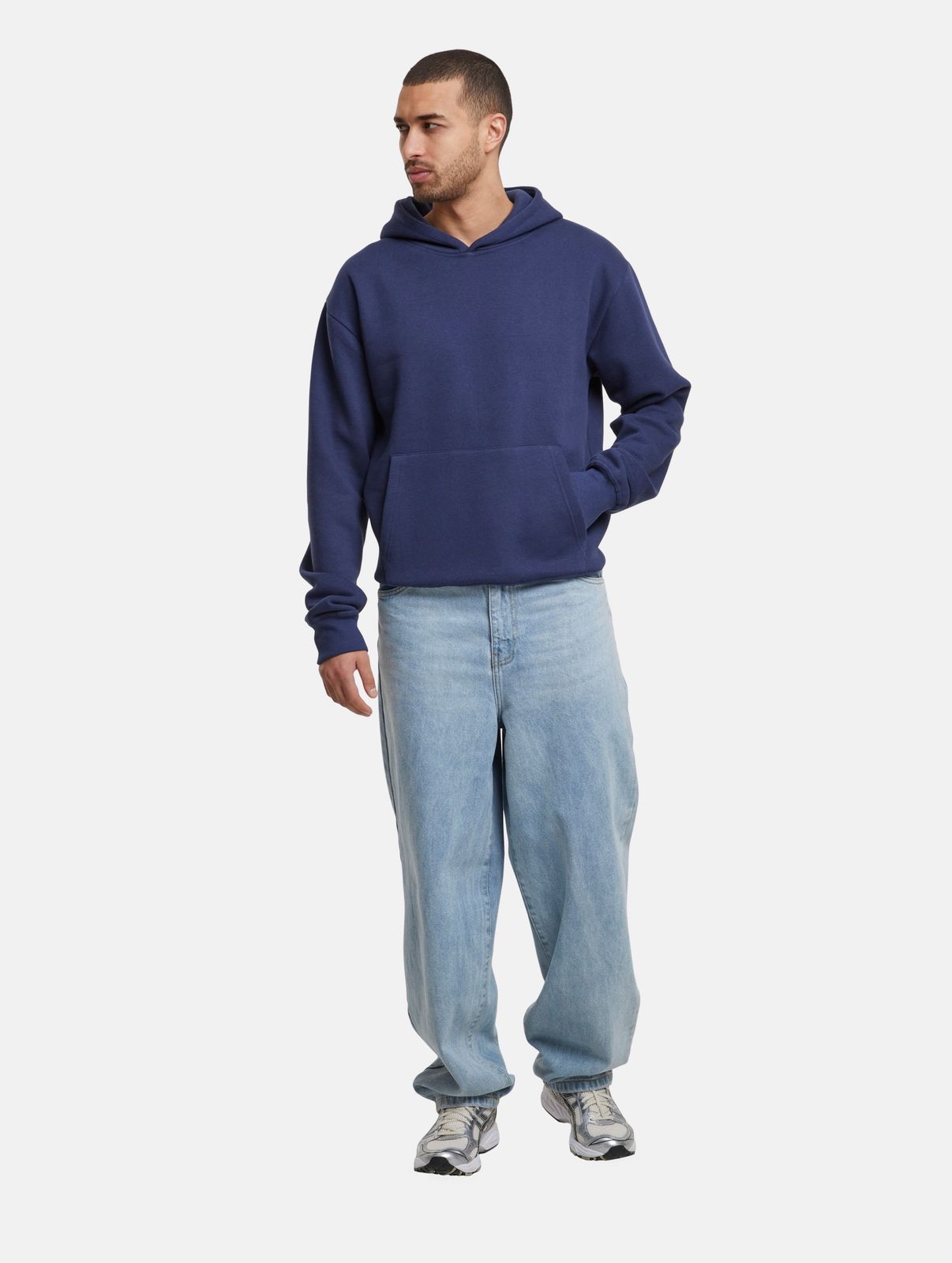 Description courte : Sweat à capuche homme vierge avec poches kangourou, motif Ligue européenne de football, bleu concours