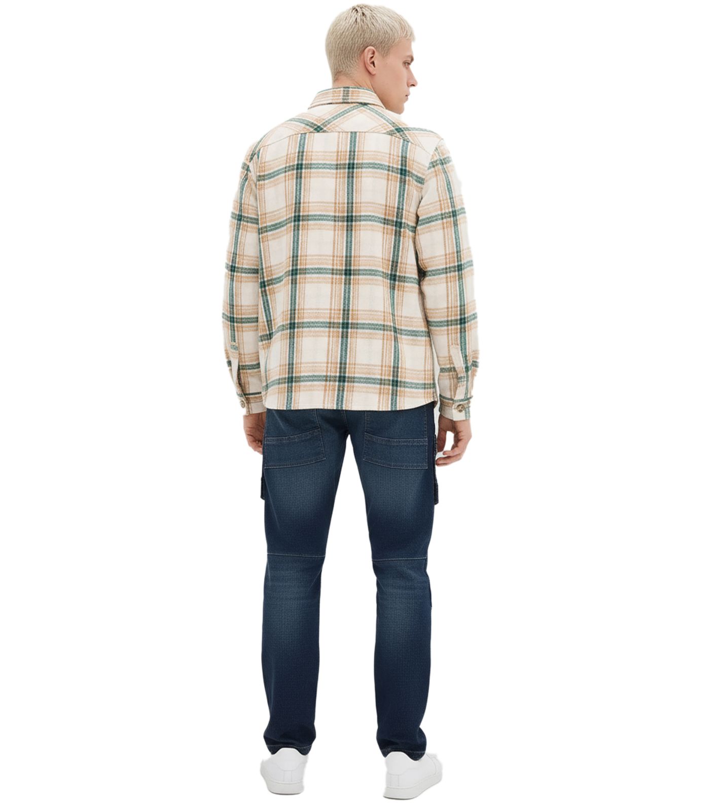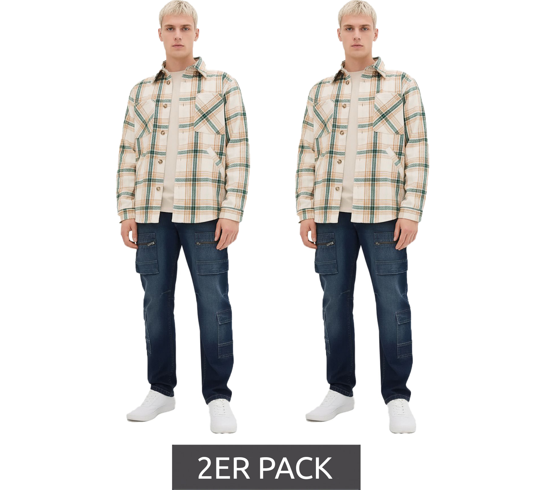 Lot de 2 vestes-chemise homme à carreaux, veste mi-saison, beige/vert/blanc