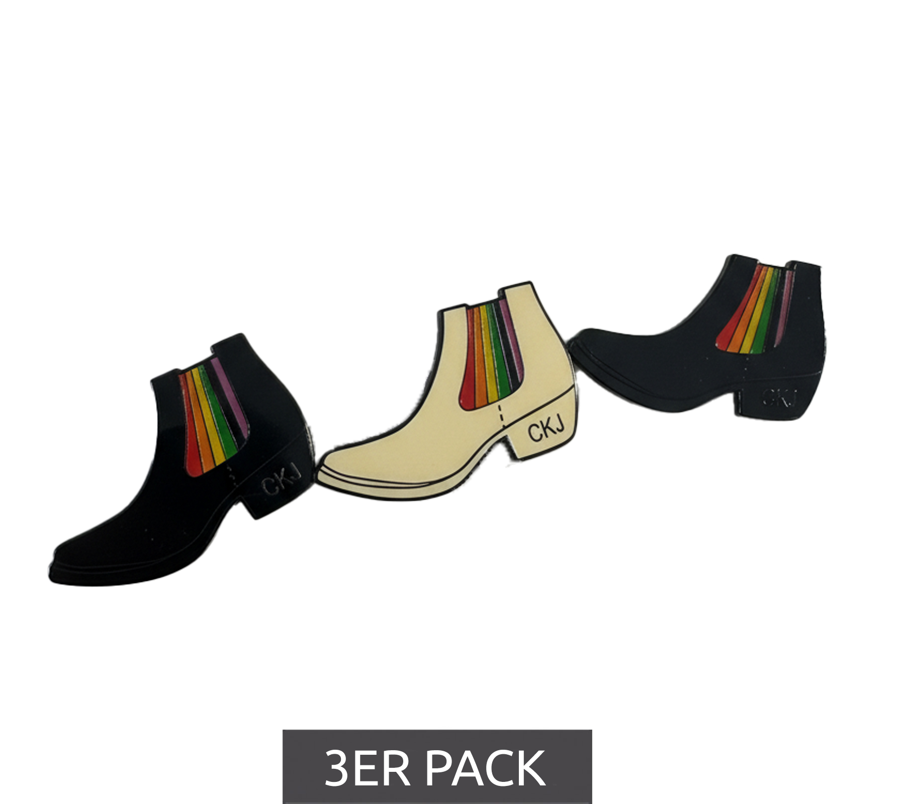 Lot de 3 badges pin-up unisexes Calvin Klein style bateau, broches en acier inoxydable émaillé KJJNDH300 Noir, Orange, Beige, Rouge, Marron, Bleu