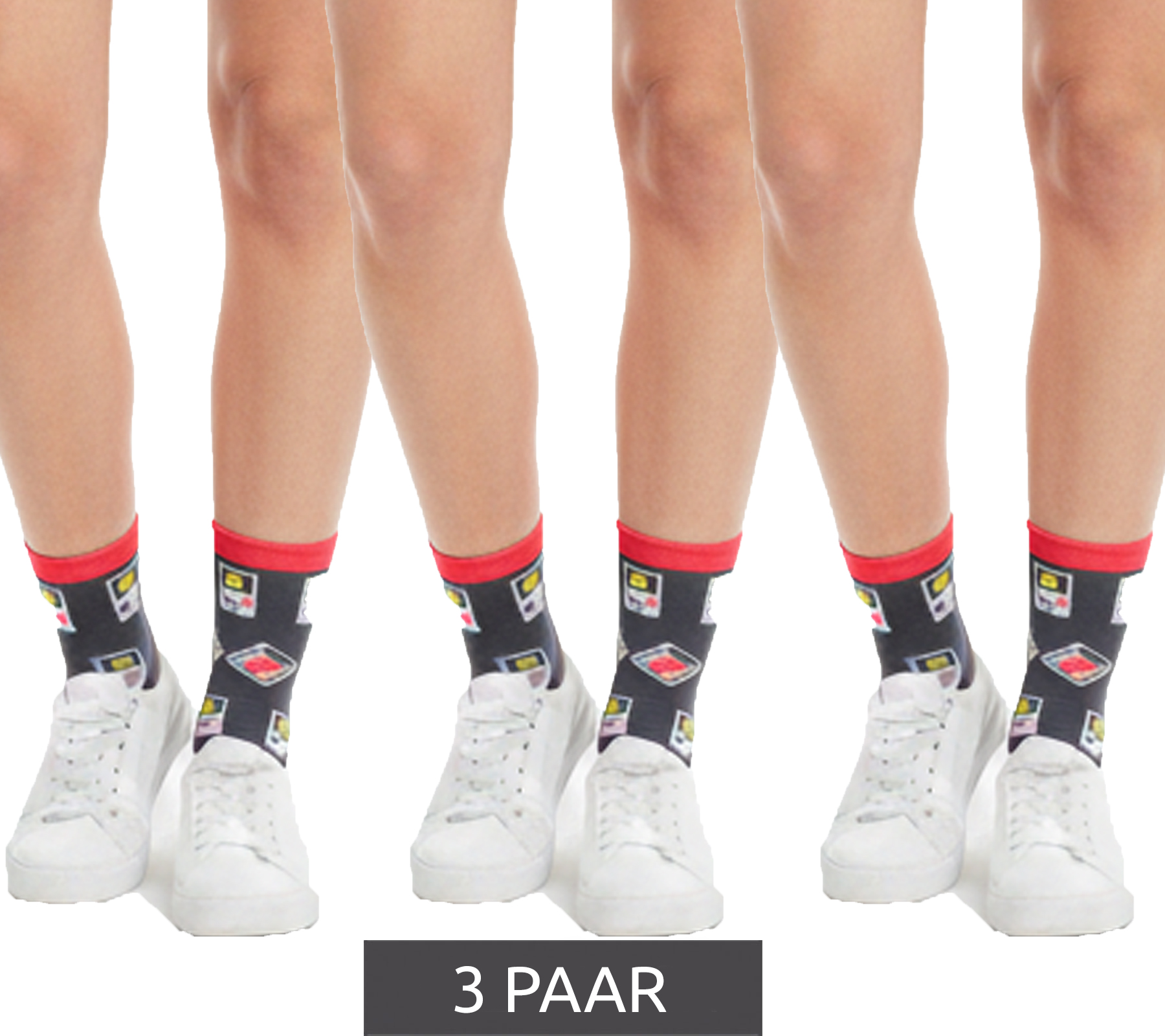 Lot de 3 paires de chaussettes Moustard en coton, motif Game Boy rétro, chaussettes hautes 22S-GAME Gris/Rose/Blanc