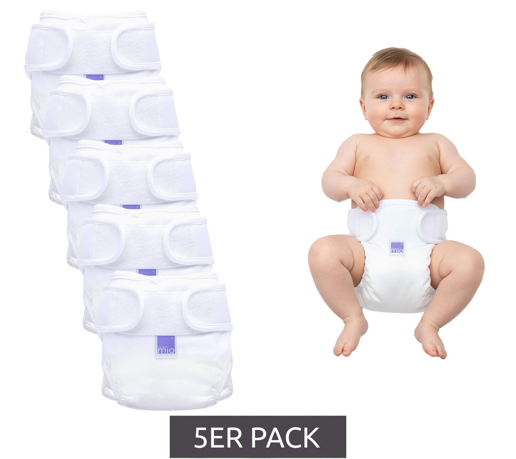 Lot de 5 couches lavables Bambino Mio pour bébés et jeunes enfants, à pois, taille unique (3-15 kg), blanc.