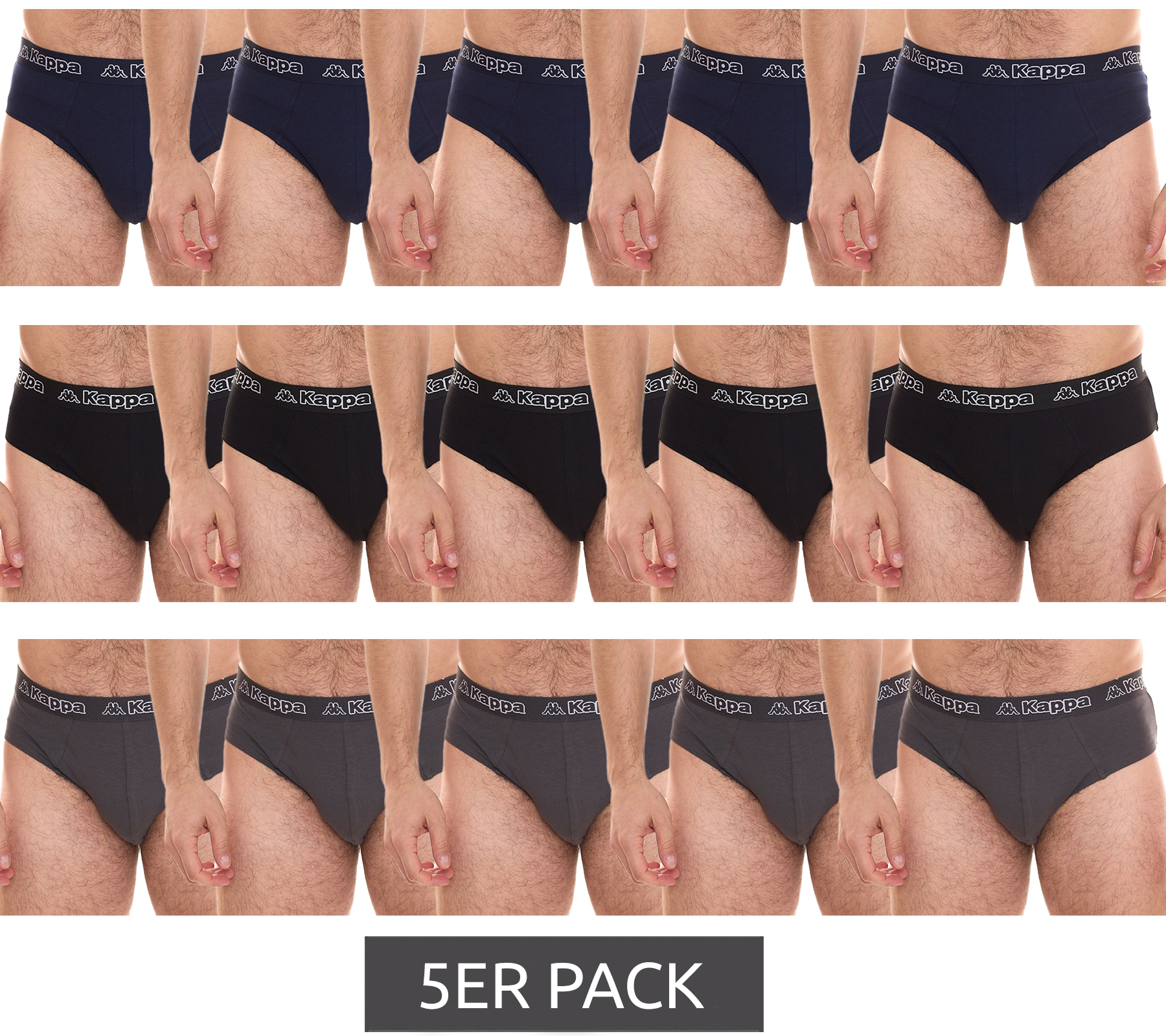 Lot de 5 slips Kappa en coton stretch pour homme avec ceinture logotée 711167, noir, bleu ou gris