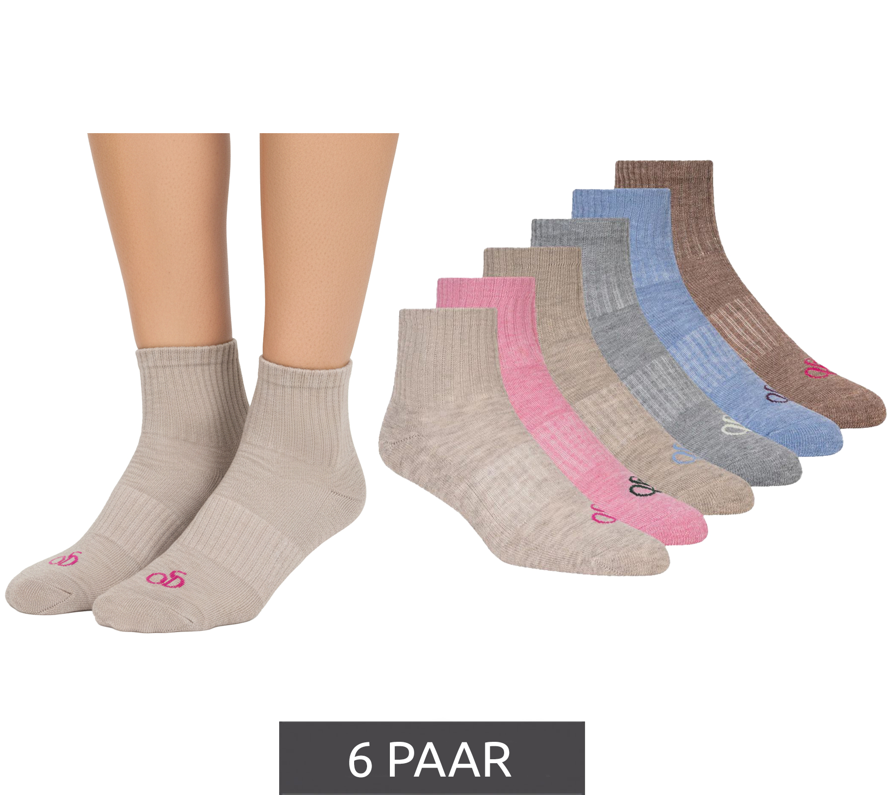 Lot de 6 paires de chaussettes mi-mollet SCOTCH & SODA pour femme, en tissu éponge, idéales pour tous les jours et le travail. Pointures 35,5-39,5 (SS123620 280), coloris beige, rose, beige clair, gris, bleu clair et marron.