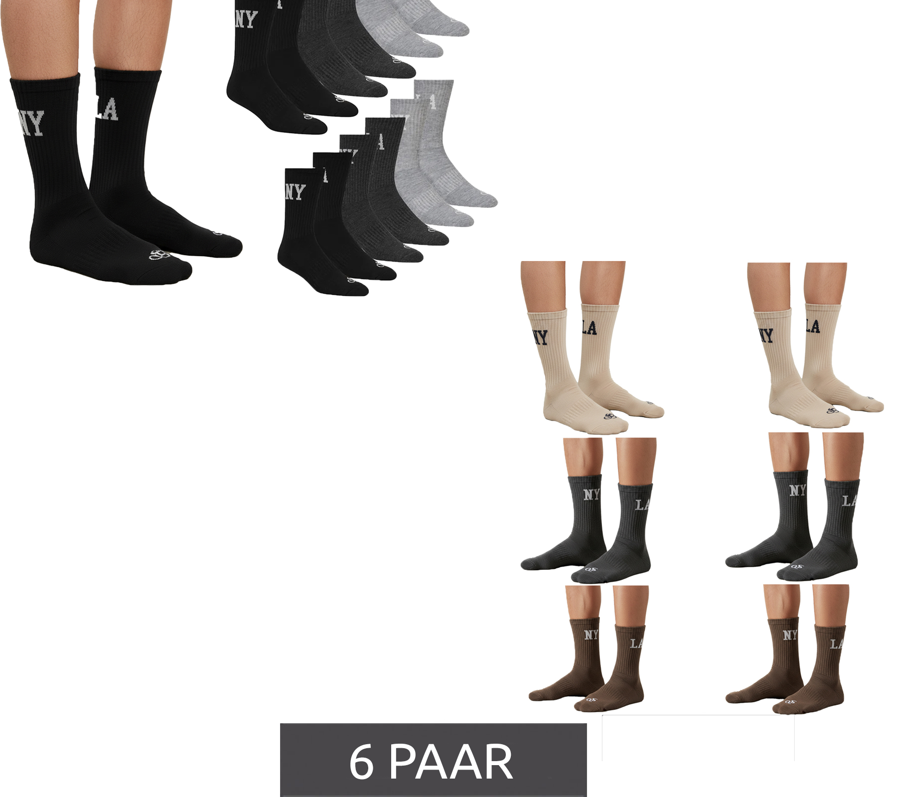 Le lot comprend : 6 paires de chaussettes : 2 marron, 2 beige, 2 gris foncé OU 2 noires, 2 gris foncé, 2 grises.