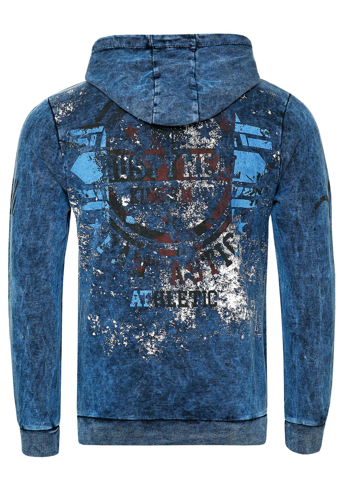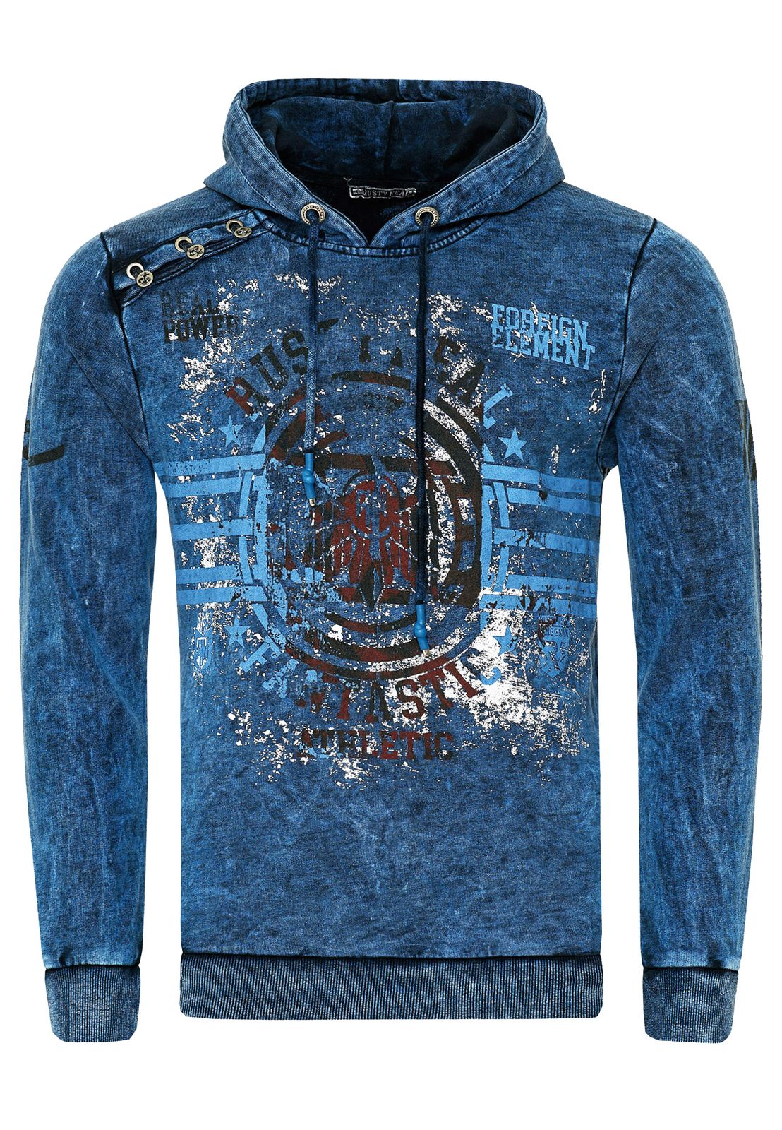 Pull à capuche homme remarquable, en toile délavée à l'huile avec imprimés vintage et détails de boutons, référence 19130, bleu marine