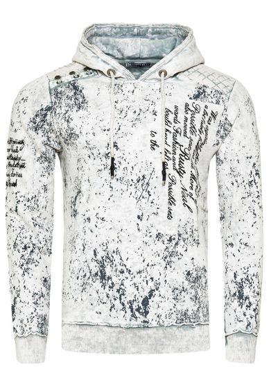 Pull à capuche moderne pour homme, en toile délavée à l'huile avec motif matelassé et imprimés, référence 19131, blanc