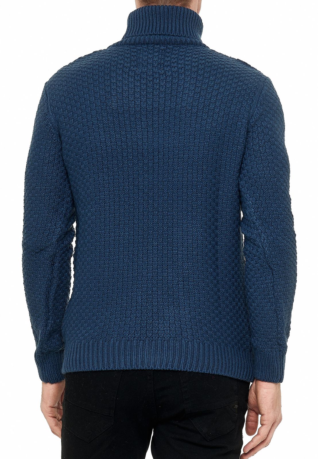 Pull col roulé en grosse maille pour homme, orné d'un motif, référence 13348, couleur pétrole.