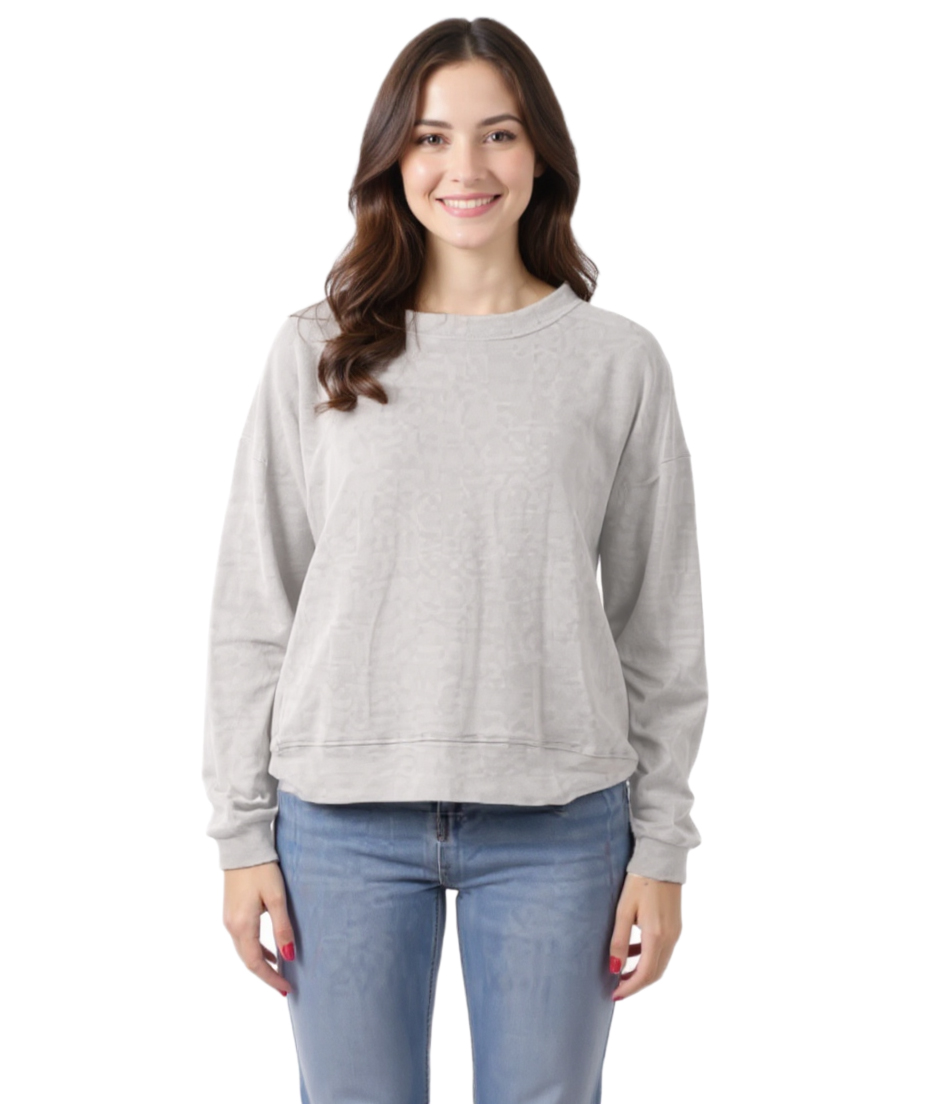 Pull décontracté en coton à col rond ZEGY pour femme 1076, gris ou gris clair