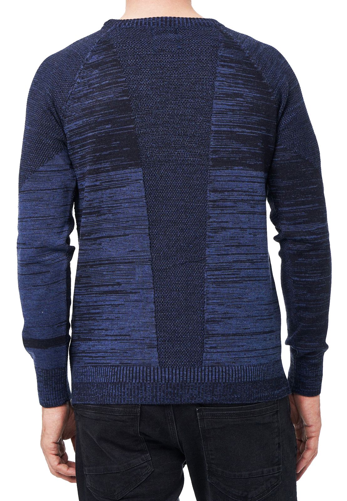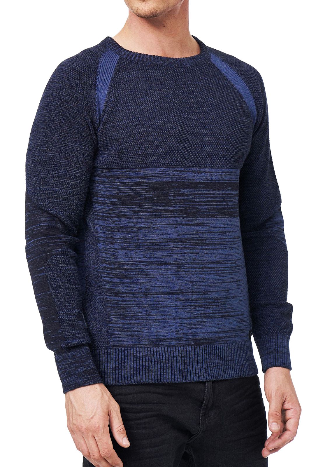 Pull homme à col rond en maille fine, style sportif, référence 13417, bleu marine