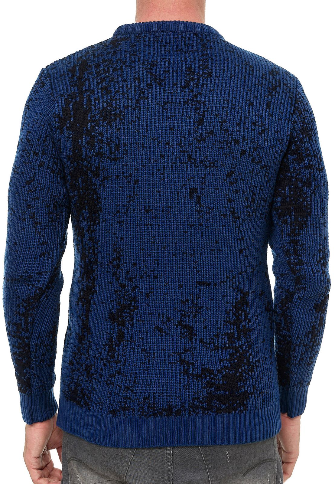 Pull homme intemporel à col rond bicolore, maille fine 13433 Sax Blue