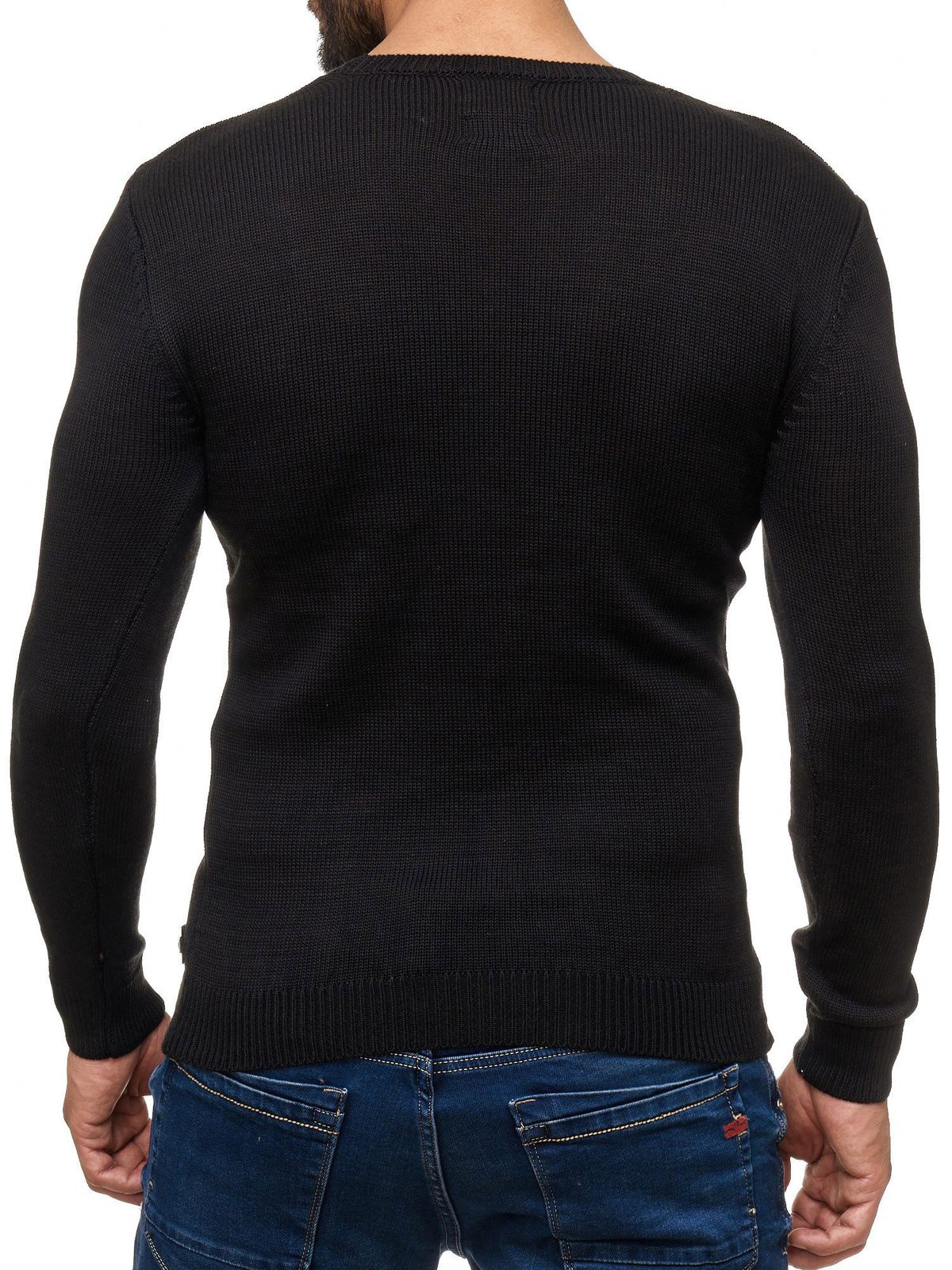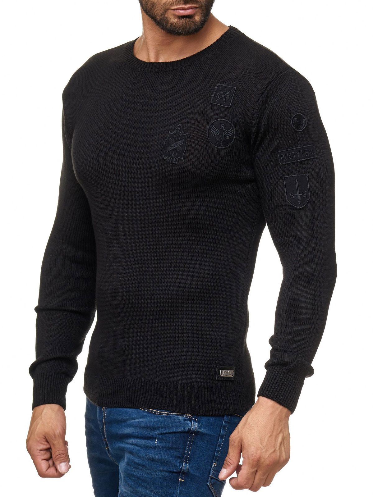 Pull homme tendance à col rond avec écussons, en maille style militaire 13297 Noir