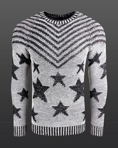 Pull homme tendance à col rond, motif « USA Stars & Stripes », en maille grise (réf. 6263).