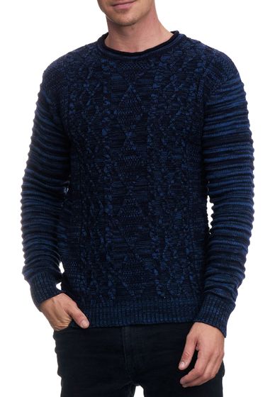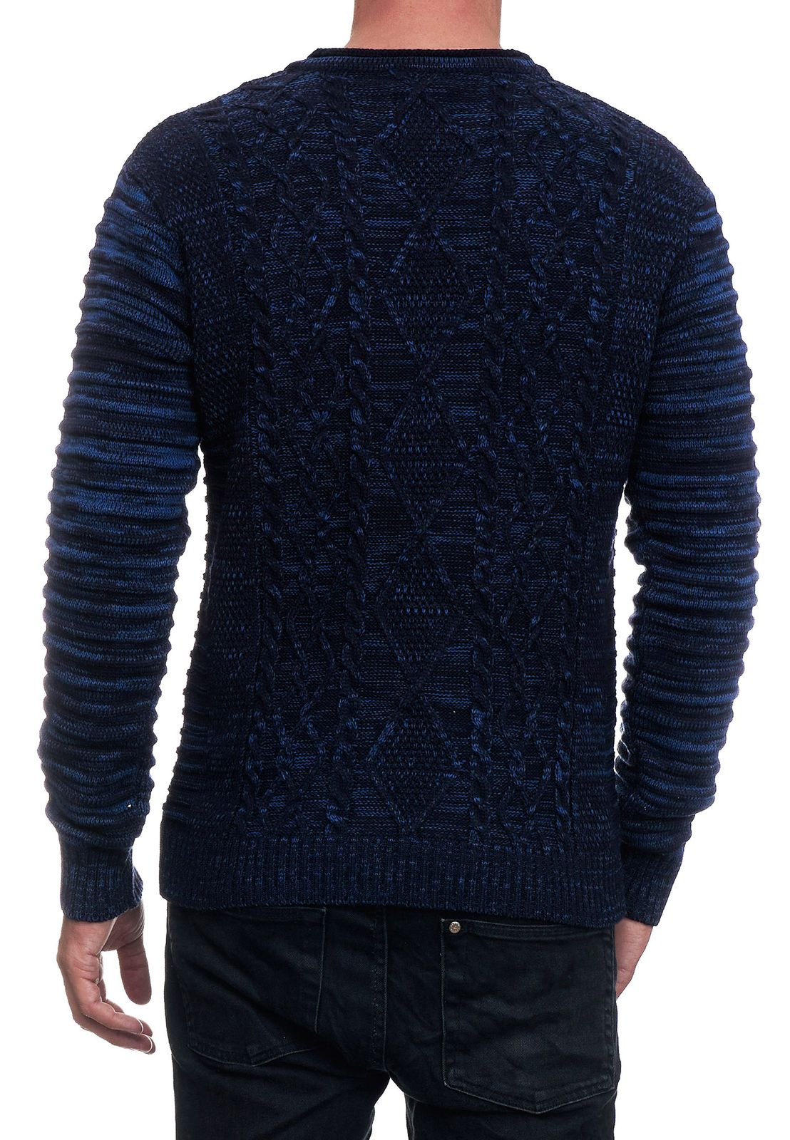 Pull motard homme élégant à col rond en grosse maille, référence 13357, bleu marine