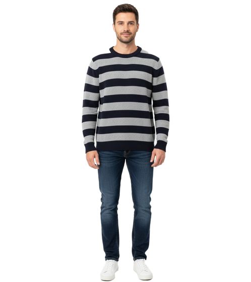 Pull rayé ESPRIT pour homme, col rond, 100 % coton, bleu foncé/gris