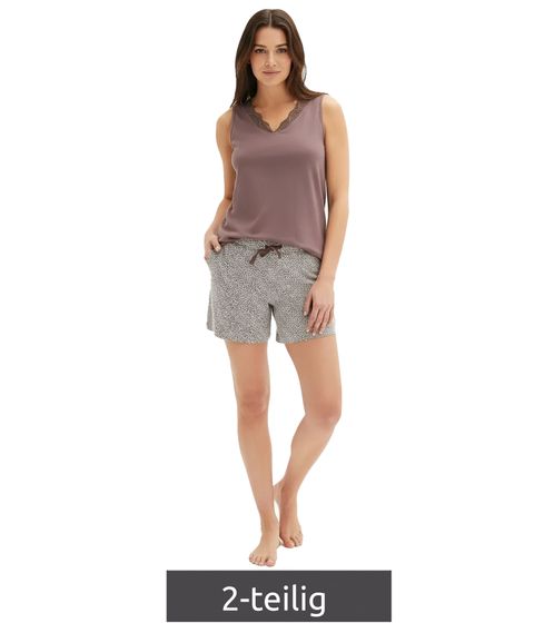 Pyjama court deux pièces tendance pour femme, en coton à pois et dentelle, coloris marron/gris 959182