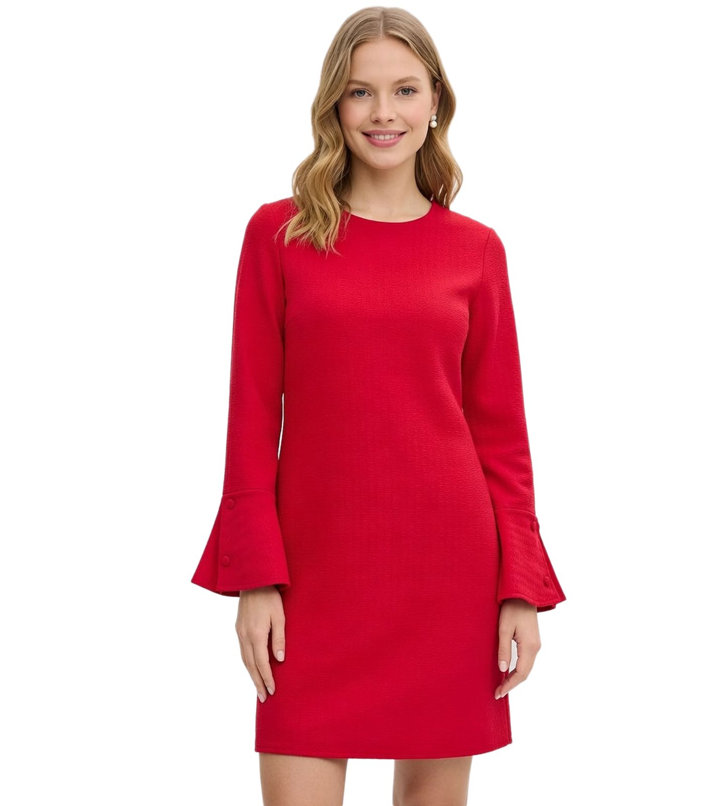Robe d'été texturée pour femme, mini-robe à manches longues, robe de vacances rouge 910257