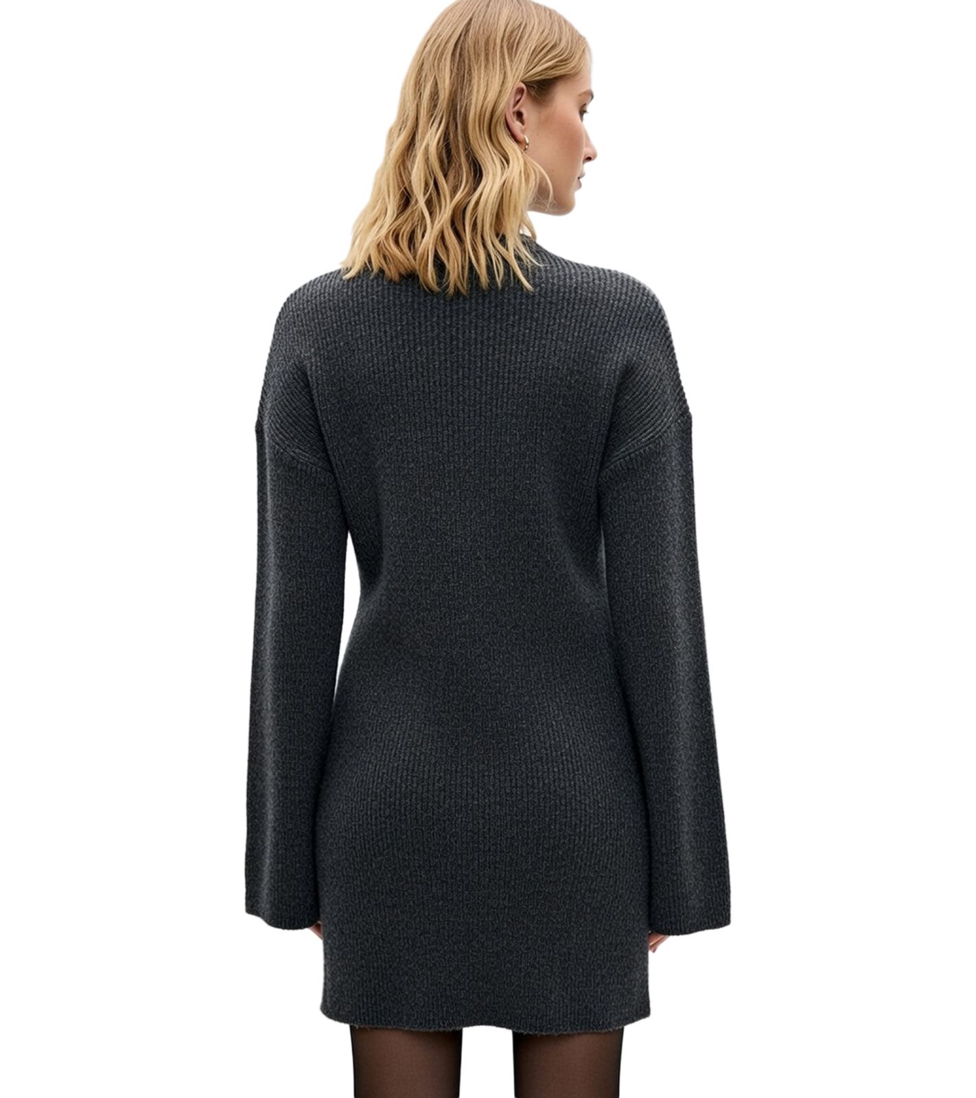 Cette robe en maille à manches longues séduit par sa coupe simple, son encolure ronde et sa longueur mini – un look classique et polyvalent.