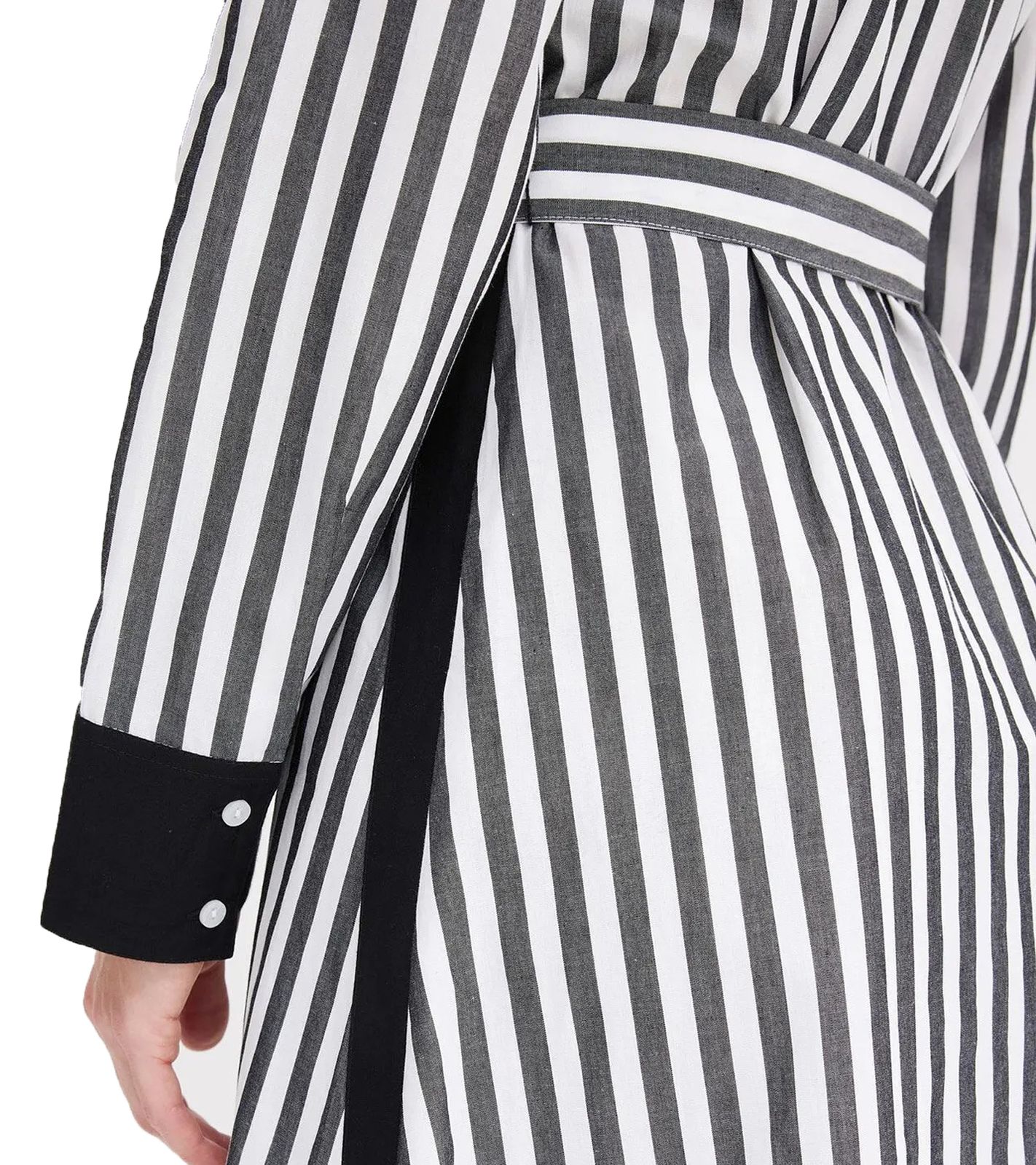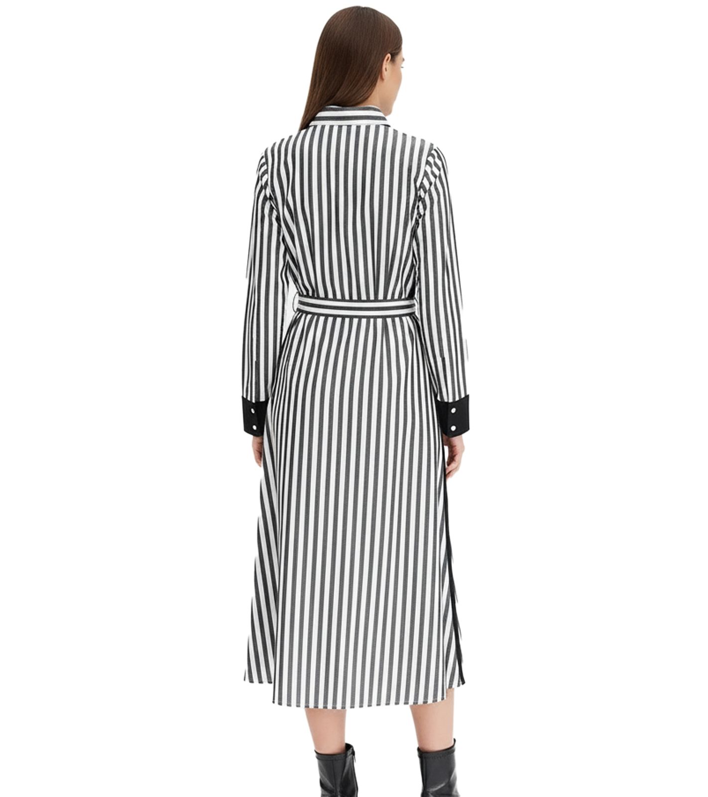 Robe midi classique pour femme, robe chemise à rayures, robe en coton 934129, noir/blanc