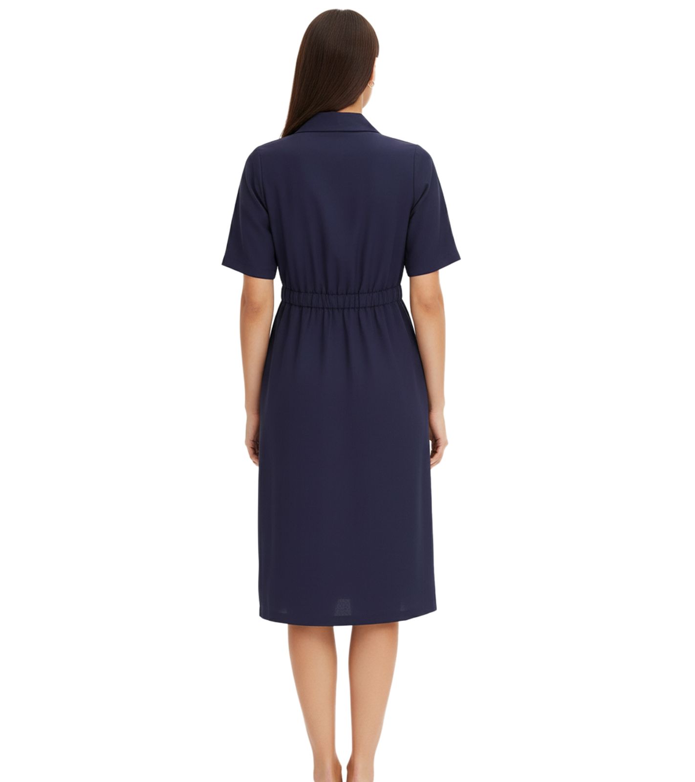 Robe midi élégante pour femme avec col à revers, robe d'automne, robe à manches longues, 934680, bleu foncé