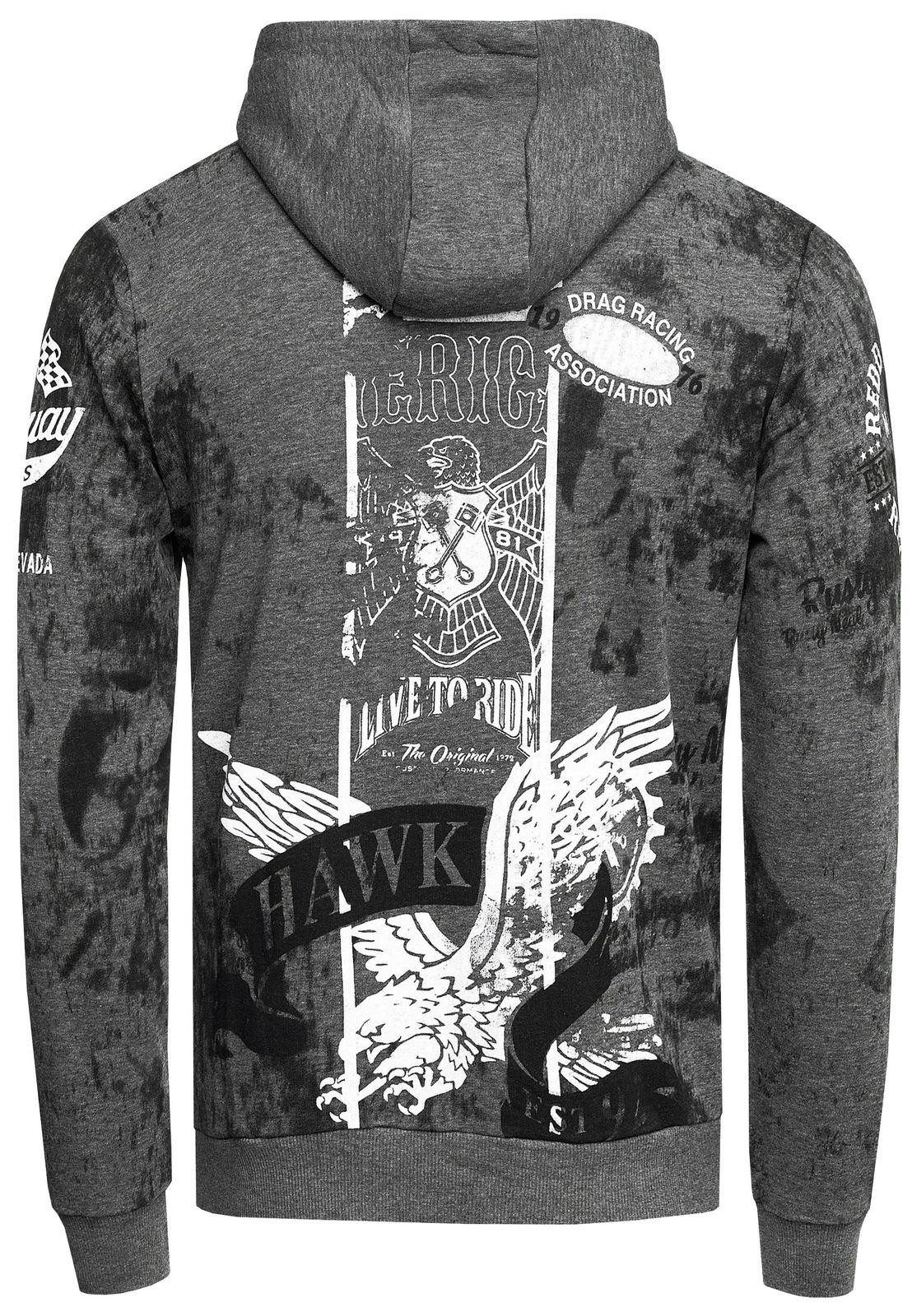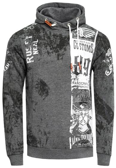 Sweat à capuche décontracté pour homme, imprimé motard et effet vintage, modèle 19137 anthracite