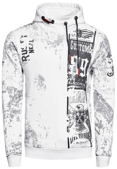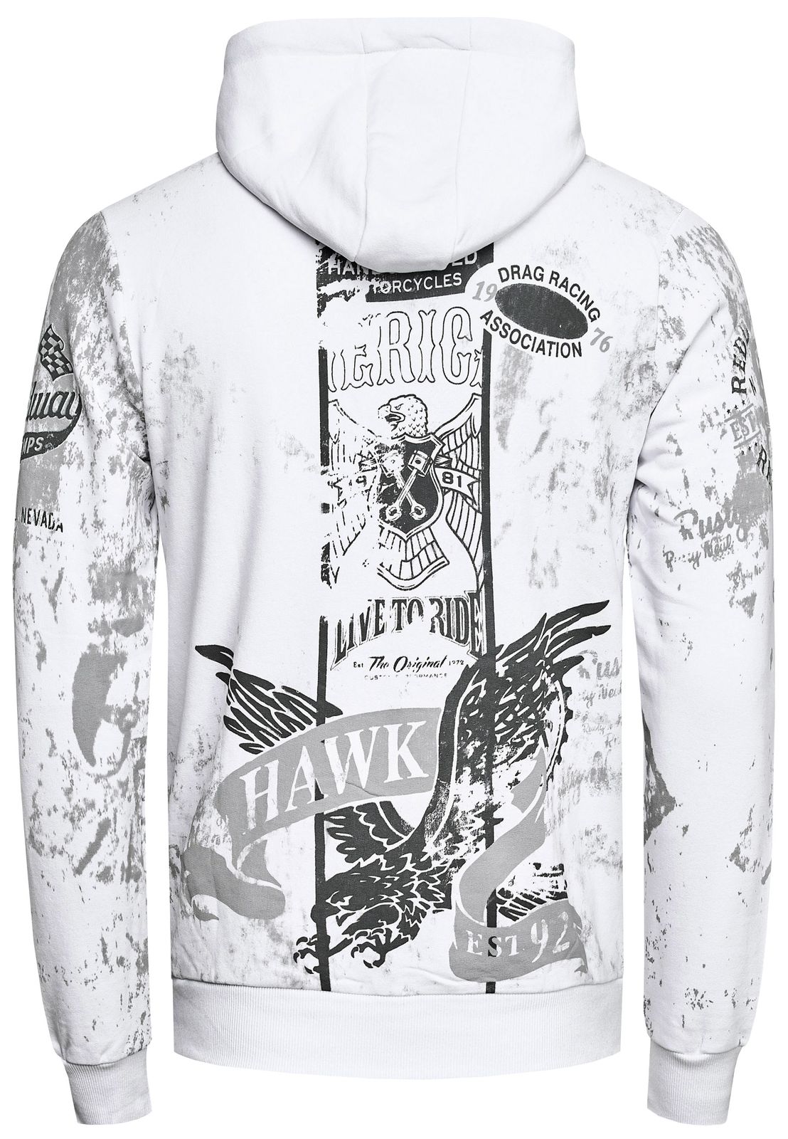 Sweat à capuche décontracté pour homme, imprimé motard et effet vintage, modèle 19137 blanc