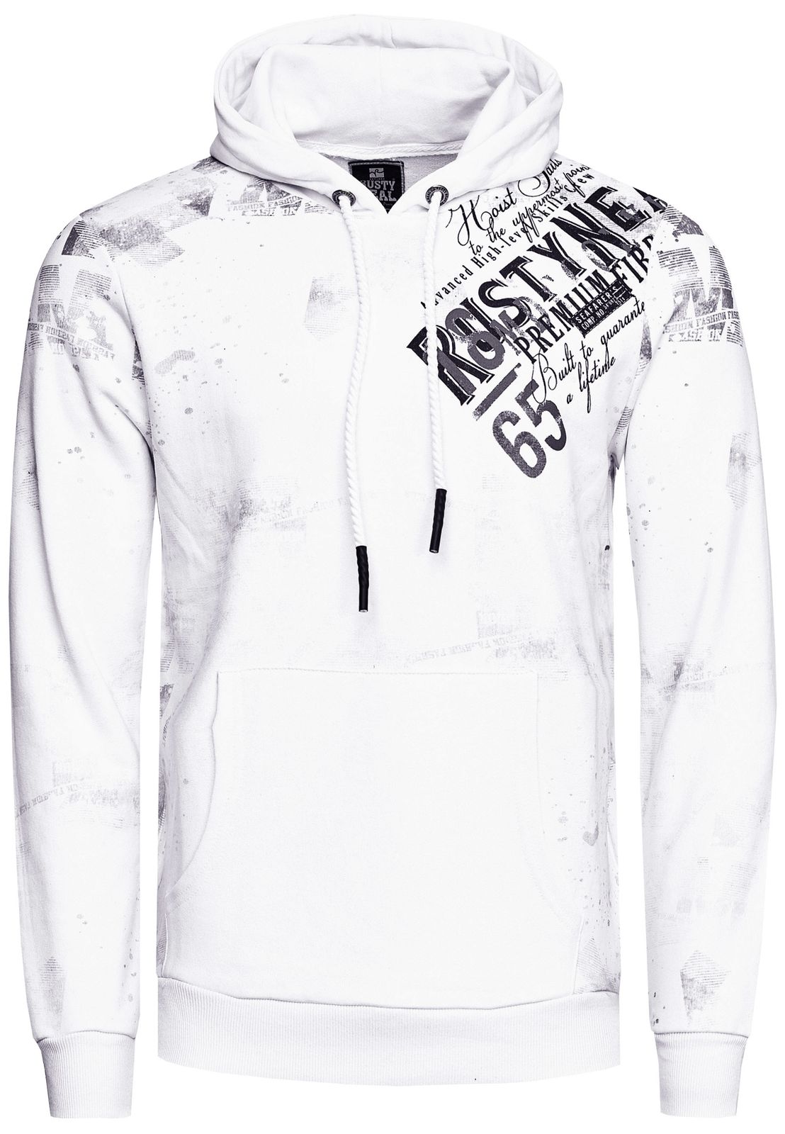 Sweat à capuche élégant pour homme, imprimé graphique intégral, poche kangourou, référence 19134, blanc